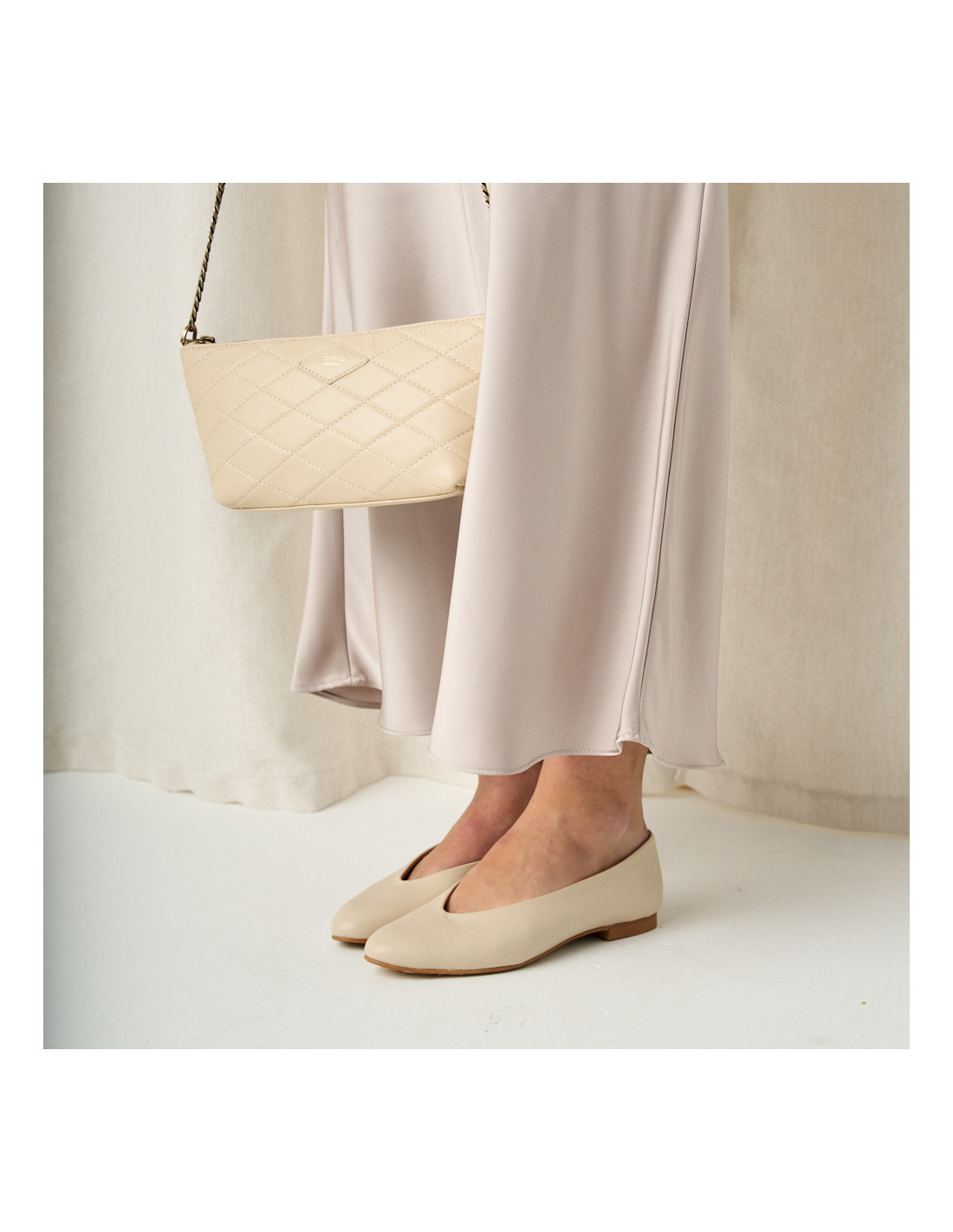 Ballerinas für Frauen aus 100% natürlichem Leder. Unsere neuen flachen Schuhe wurden von unserem Team von Schuhmachern geschaffen, damit Sie mit einem neuen Monpiel-Basic stark auftreten können. Wenn Sie nach einem bequemen Schuh suchen, der die klassische Ballerina mit der Schleife vermeidet, ist dies der richtige für Sie! Ballerina Ameliè flach mit spitzer Spitze und geschlossenem Ausschnitt um den Fuß zu stilisieren, ist ein aktuelles Modell, das ein wenig an die 90er Jahre erinnert. Bequemer und aktueller Frauenschuh aus Leder. Innenfutter und Ledersohle, damit Ihr Fuß nicht leidet und auf natürliche Weise atmet. 1,5 cm Absatz in Naturfarbe, ideal für diesen Sommer! Entworfen und handgefertigt vollständig in Spanien. Erhältlich in Lederfarbe, blasses Rosa, Beige und dem neuen Burgunder mit schwarzer Sohle und schwarzes Wildleder, etwas besonderer, wenn Sie Ihrem Look eine originellere Note verleihen möchten.