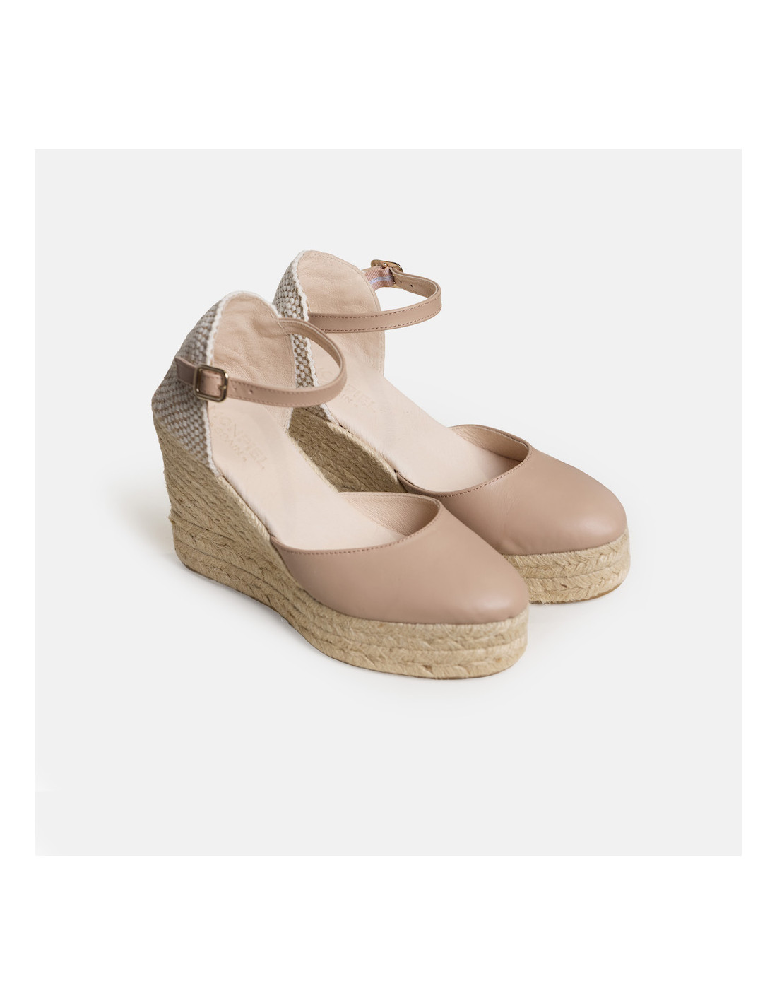 Die Espadrille mit hohem Keilabsatz und Knöchelriemen Paros ist aus 100% echtem Leder mit Jute-Keilabsatz gefertigt, in handwerklicher Herstellung und mit großer Sorgfalt für jedes Detail. Sie verfügt über einen Knöchelriemen mit verstellbarer Schnalle, damit Sie sie perfekt anpassen können und bei jedem Schritt nur Komfort spüren… Sie werden vergessen, dass Sie sie tragen. Ein Design, das die Essenz der traditionellen Espadrille mit der Eleganz eines Schuhs mit Höhe verbindet.