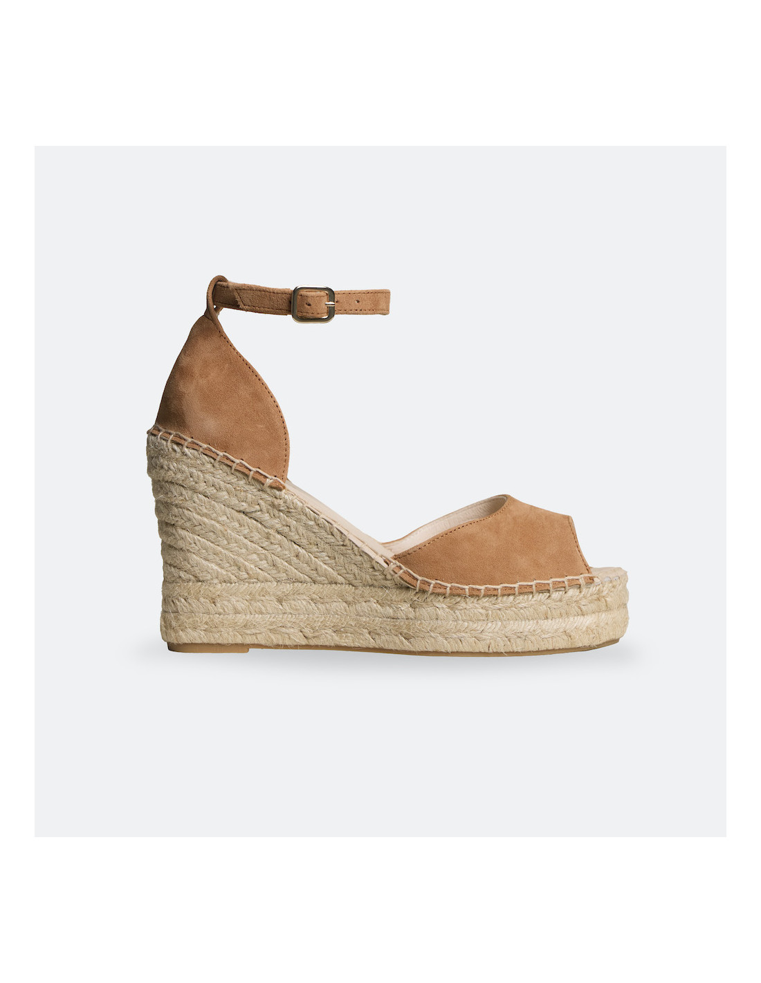Alle Details sprechen für Handwerkskunst und Können, und die Kombination natürlicher Materialien macht diese Espadrilles aus Leder mit hohem Keilabsatz zu einer vielseitigen Option mit einzigartigem Finish. Erhältlich in Veloursleder in Lederfarbe, einem warmen und natürlichen Ton, der sich leicht mit sommerlichen Looks kombinieren lässt.