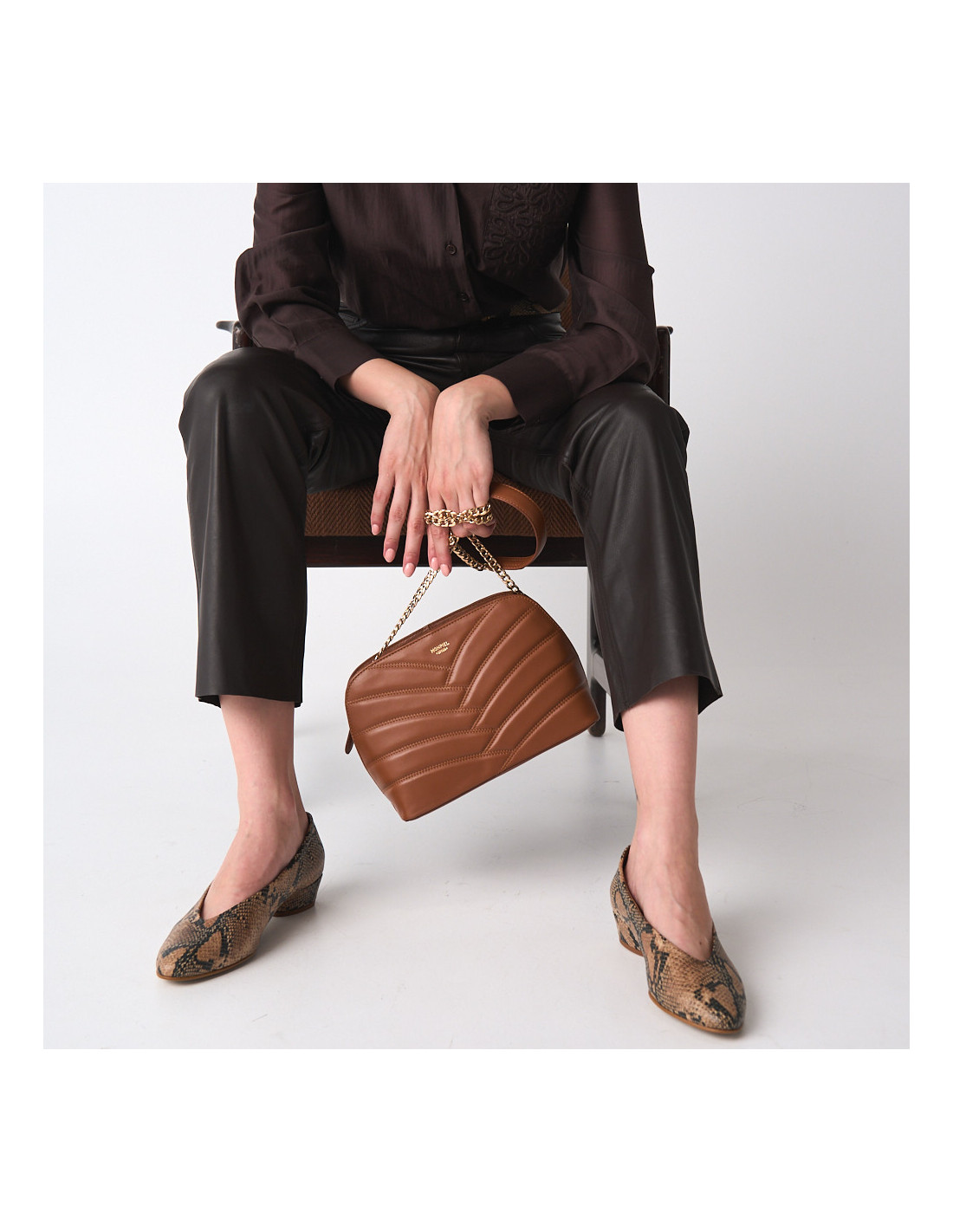 Gestepptes Lederhandtasche für Damen in mittlerer Größe mit goldener Kette. Eine klassische, aber modern interpretierte Ledertasche. Jede Frau braucht eine hochwertige Tasche mit goldener Kette im Kleiderschrank — die Kette verleiht dem Look einen Hauch von Vintage und Eleganz, ob im Alltag oder zu festlichen Anlässen. Einfach ein wenig mit Outfits spielen, und du kannst diese Tasche sowohl ins Büro als auch zu einer Hochzeit tragen. Das perfekte Accessoire für jeden Anlass.