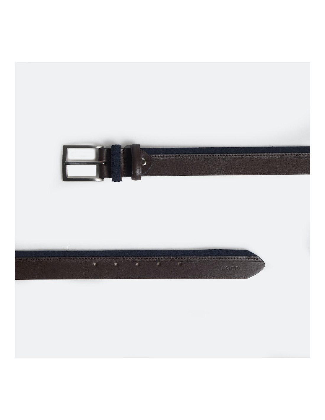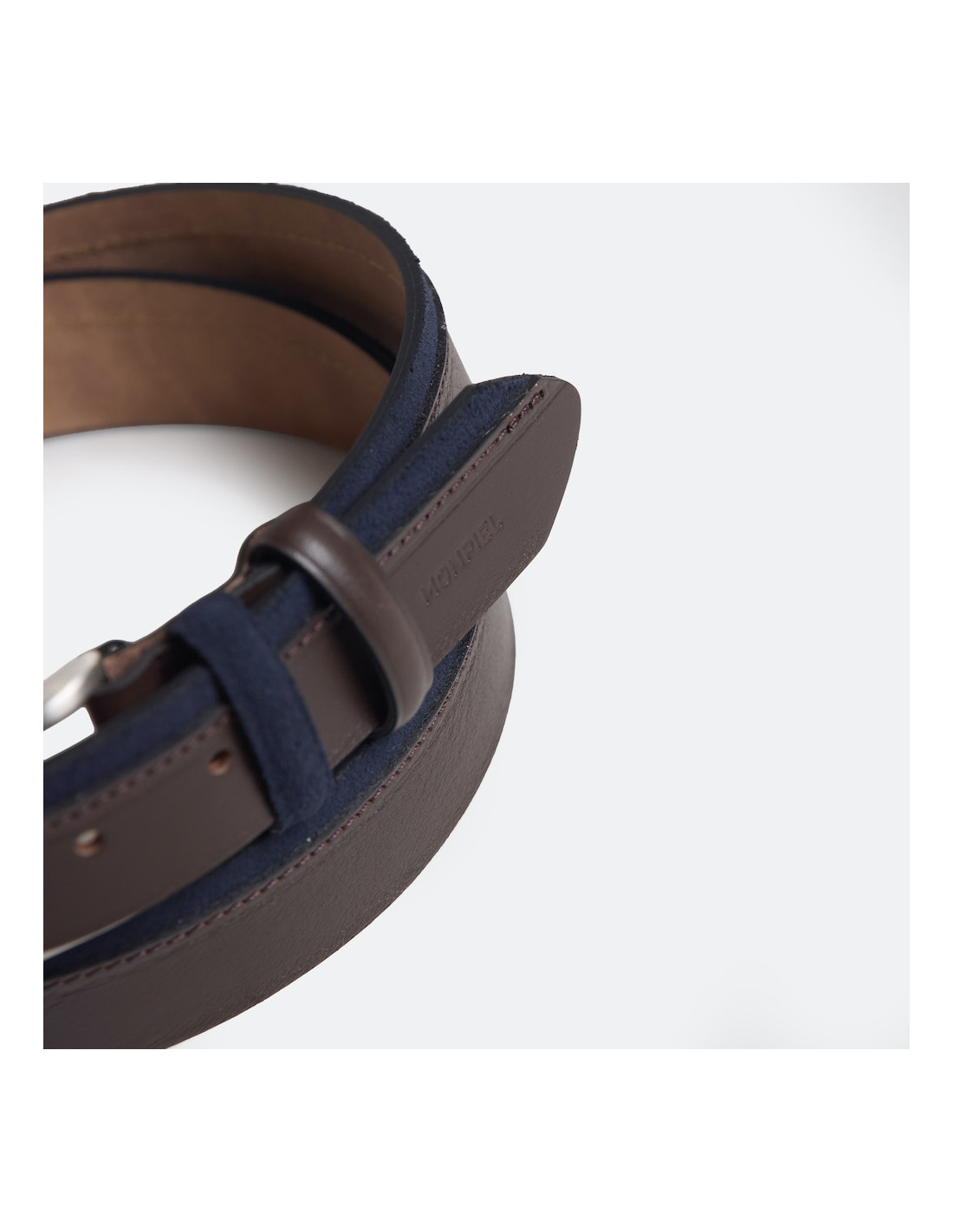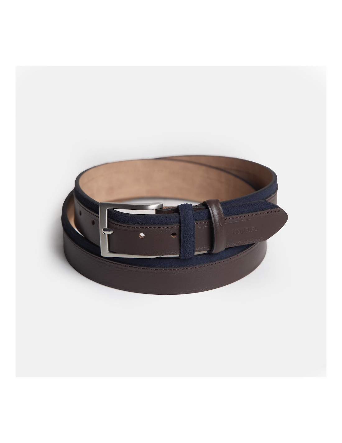 Ledergürtel aus gemischtem Rindsleder und Wildleder. Dieser Herrengürtel hat ein neues und unterschiedliches Design, verleiht Ihren Looks mit diesem exklusiven Design eine Note von Eleganz. Perfekte Verarbeitung von den besten spanischen Sattlern und eine Farbmischung, die Sie täglich kombinieren können. Handgefertigt in Spanien aus hochwertigem Leder. In 3 Farben erhältlich: Marineblau, Bordeaux und Havanna.