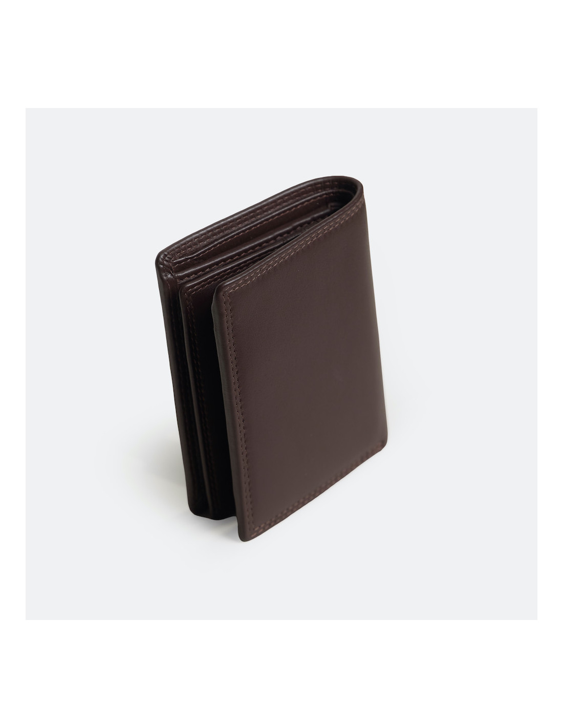 Men's wallet with interior purse made of 100% natural leather. Classic design with double stitching. Capacity for 9-11 cards, double wallet and purse. Available in two colors: black and brown.
