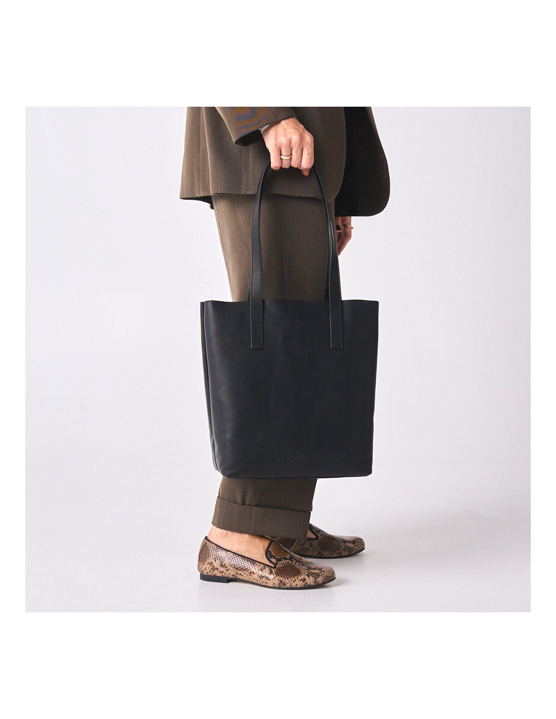 Women's Leather Shopper Bag. This lightweight and simple leather bag from our MONPIEL BASICS collection is perfect for updating your wardrobe and adding a touch of elegance and sophistication to your everyday outfits. This shopper has no lining to keep it lightweight, but includes an inner fabric pouch with zip closure — ideal for safely storing your essentials. Fits a laptop and documents. Back to basics and make your daily routine easier and lighter. Available in black and tan.
