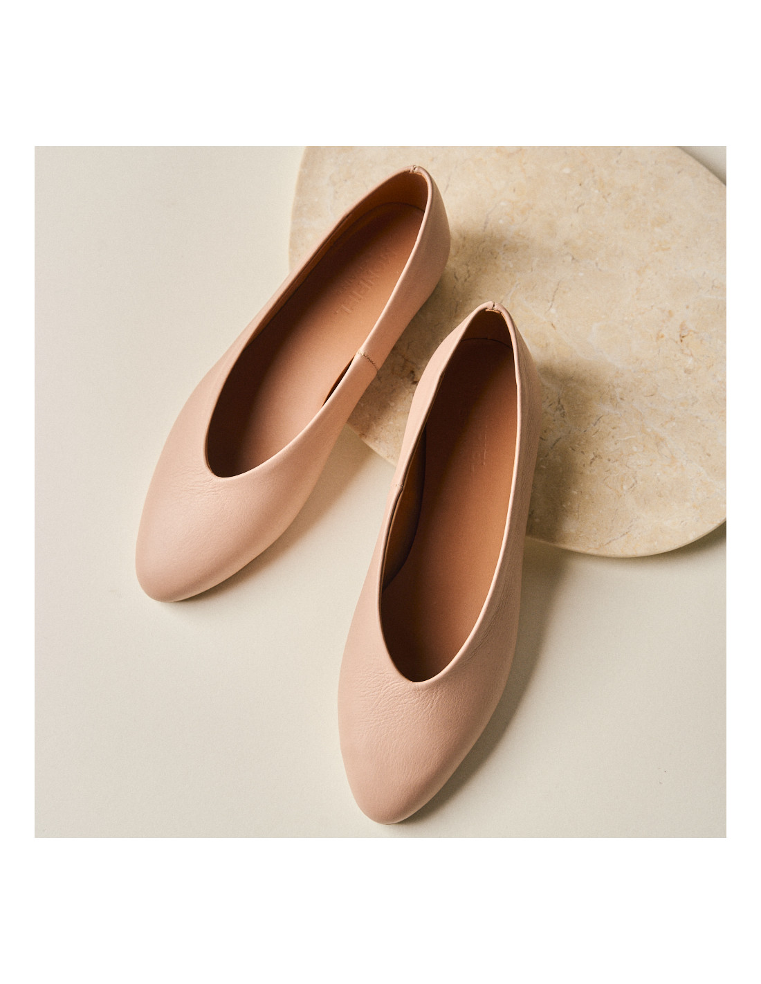 Des ballerines pour femmes en cuir 100% naturel. Nos nouvelles chaussures plates ont été créées par notre équipe de cordonniers pour que vous puissiez marcher fièrement avec un nouveau basique Monpiel. Si vous cherchez une chaussure confortable qui fuit la ballerine classique avec le nœud, c'est la vôtre! Ballerine Ameliè plate à bout fin et décolleté fermé pour styliser le pied, c'est un modèle actuel qui évoque un peu les années 90. Chaussure en cuir pour femme confortable et actuelle. Doublure intérieure et semelle en cuir pour que votre pied ne souffre pas et respire naturellement. Talon de 1,5 cm en couleur naturelle idéale pour cet été! Conçues et fabriquées entièrement à la main en Espagne. Disponible en couleur cuir, rose pâle, beige et le nouveau grenat avec la semelle noire et daim noir, quelque chose de plus spécial, si vous voulez donner à votre look une touche plus originale.
