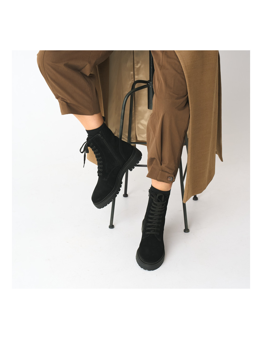 La Bottine à Lacets Camila combine la durabilité de son cuir suédé marron avec une semelle en caoutchouc robuste qui donnera à ce modèle une touche unique et spéciale. C'est une botte pour femme conçue pour relever tout défi que la vie quotidienne peut présenter. Son esthétique, marquée par les lacets et une silhouette classique, offre une touche d'élégance décontractée qui complète parfaitement toute tenue, du look de bureau à votre tenue de week-end. Cette botte se ferme avec une fermeture éclair sur son côté intérieur pour votre confort.