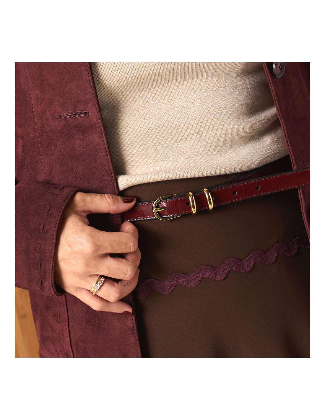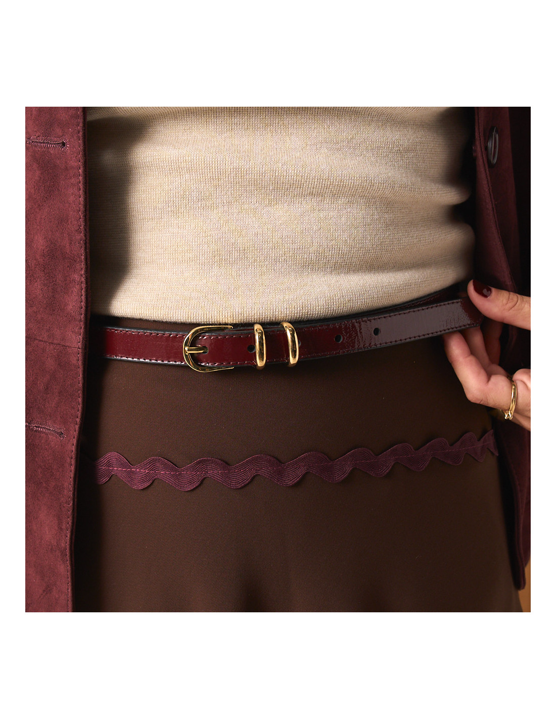Ceinture fine en cuir pour femme conçue pour sublimer n'importe quelle tenue, qu'elle soit décontractée ou habillée. Avec sa silhouette étroite et ses détails dorés sur la boucle et les passants, elle offre de nombreuses options de style. Choisissez la couleur qui vous ressemble le plus.