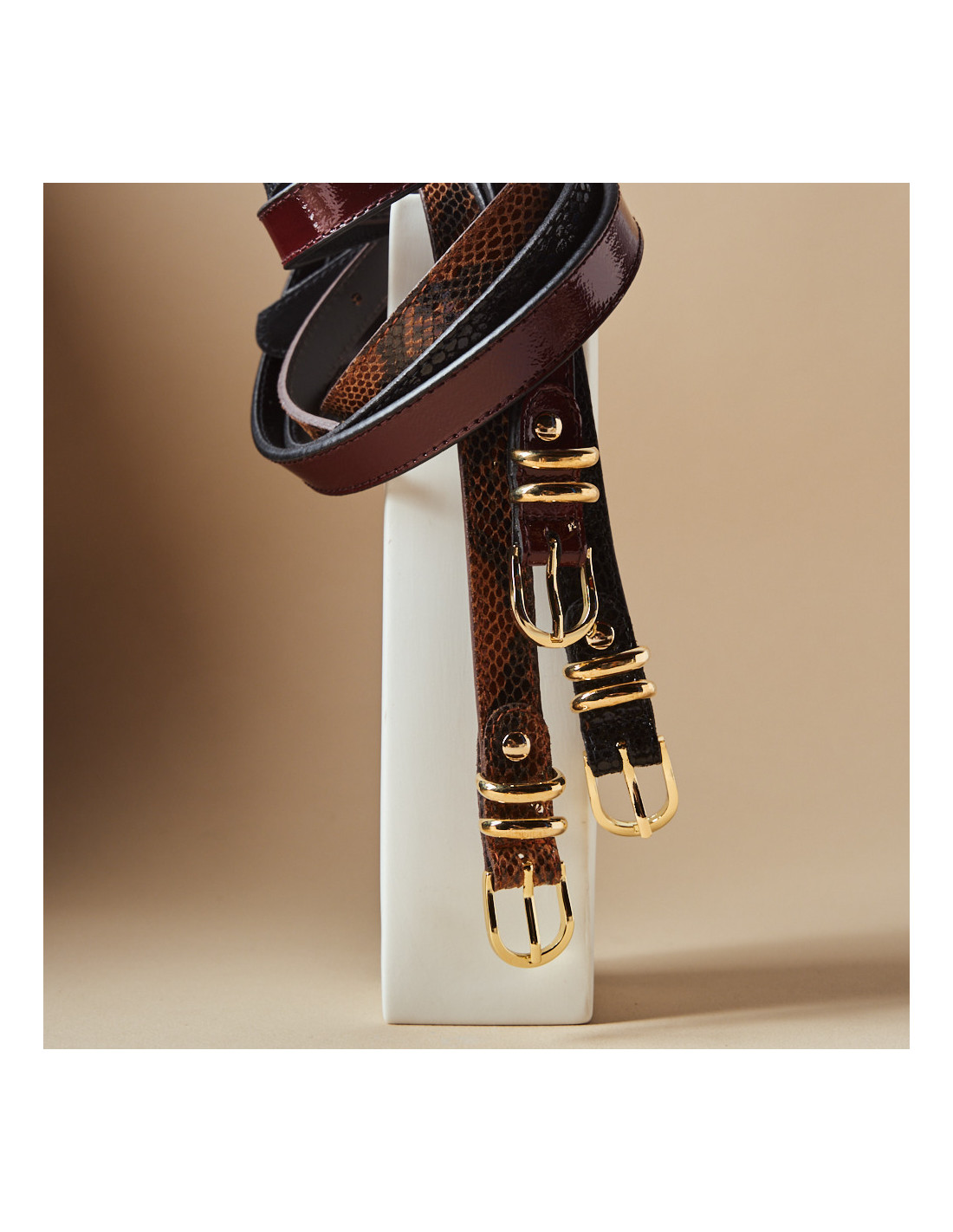 Certains accessoires transforment un look, et cette ceinture en fait partie. Sa boucle dorée et son double passant ajoutent une touche glamour sans en faire trop.