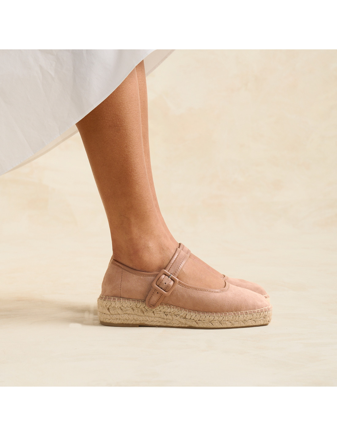 Notre espadrille Mary Jane Cuba est fabriquée à partir d'une combinaison de cuir véritable et de tissu. Elle deviendra le modèle parfait pour votre quotidien ce printemps/été. Fabriquée artisanalement et disponible en toile beige brillante et en daim rose poudré, deux combinaisons audacieuses mais en même temps basiques que nous pensons ajouteront cette touche spéciale à votre garde-robe. C'est la chaussure parfaite pour voyager, aller au bureau ou se promener. Elle est dotée d'une semelle en jute, d'un talon de 4cm (plateforme de 2cm) et d'un bout carré qui est si tendance. Le confort d'une chaussure plate, avec un peu de talon! Elle se fixe à votre pied avec une lanière fermée par une boucle. Cette Mary Jane ne se démode jamais et le meilleur, c'est qu'elle s'accorde avec n'importe quel look!