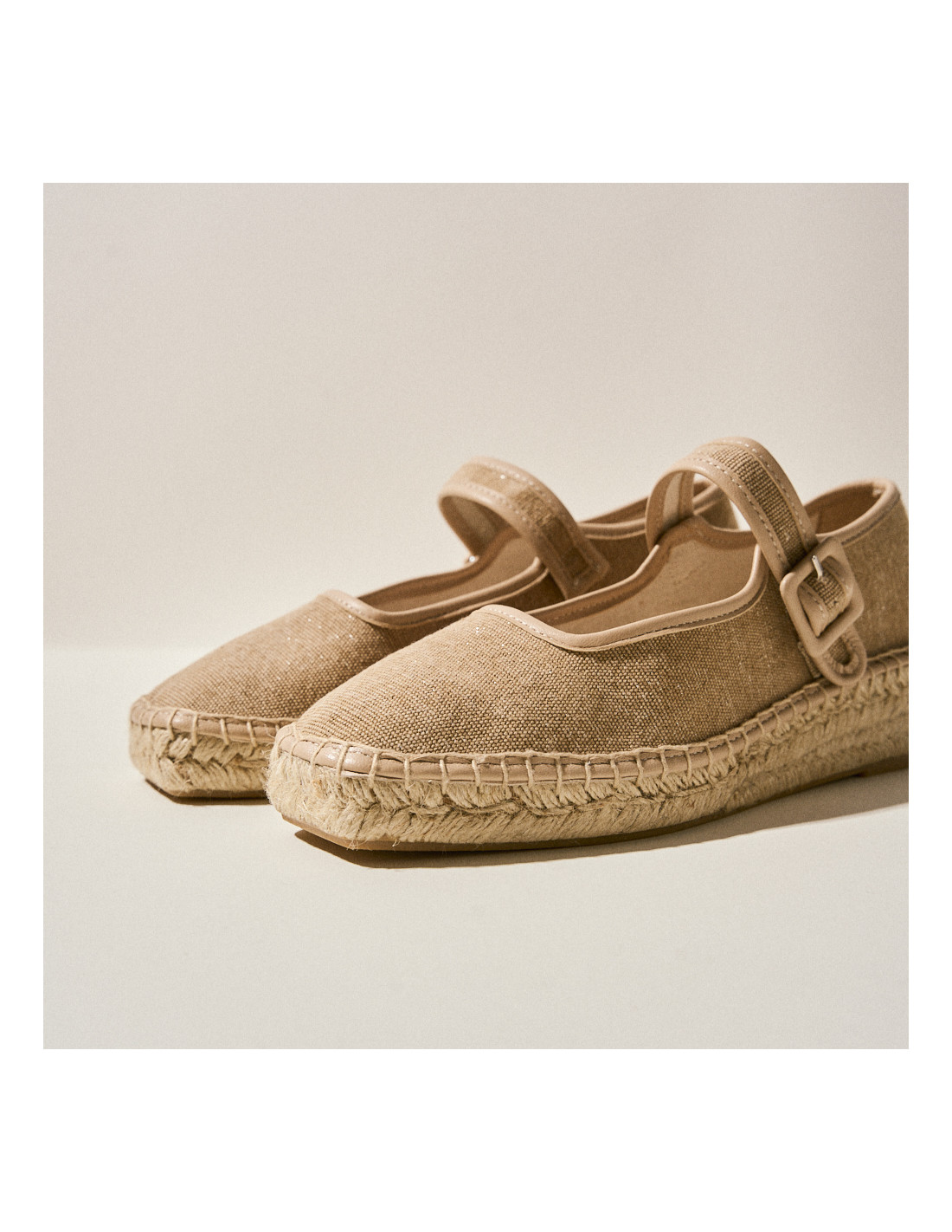 Notre espadrille Mary Jane Cuba est fabriquée à partir d'une combinaison de cuir véritable et de tissu. Elle deviendra le modèle parfait pour votre quotidien ce printemps/été. Fabriquée artisanalement et disponible en toile beige brillante et en daim rose poudré, deux combinaisons audacieuses mais en même temps basiques que nous pensons ajouteront cette touche spéciale à votre garde-robe. C'est la chaussure parfaite pour voyager, aller au bureau ou se promener. Elle est dotée d'une semelle en jute, d'un talon de 4cm (plateforme de 2cm) et d'un bout carré qui est si tendance. Le confort d'une chaussure plate, avec un peu de talon! Elle se fixe à votre pied avec une lanière fermée par une boucle. Cette Mary Jane ne se démode jamais et le meilleur, c'est qu'elle s'accorde avec n'importe quel look!