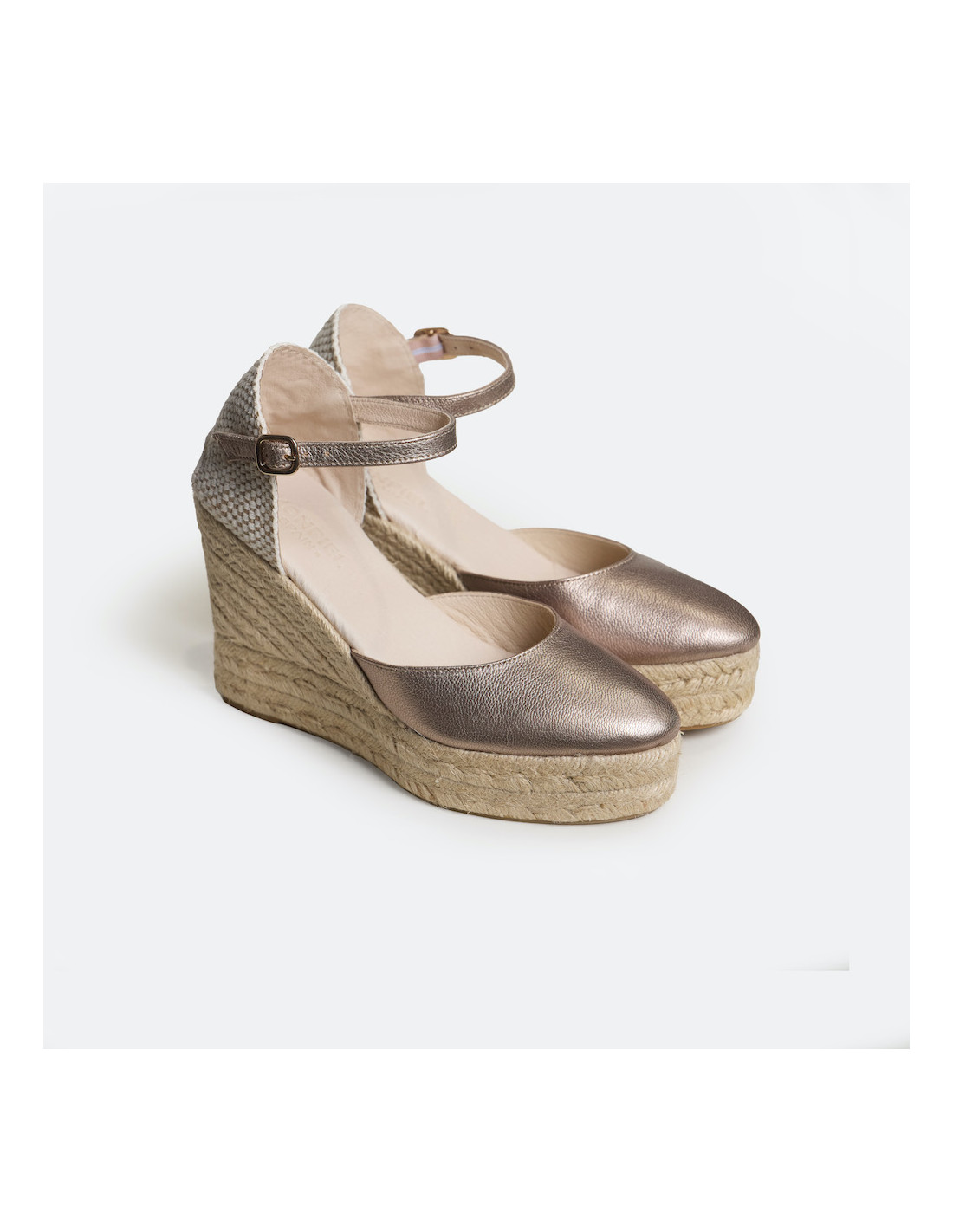 L’Espadrille à Talon Compensé Haut et Bride Paros est confectionnée en cuir 100% véritable avec une semelle compensée en jute, de manière artisanale, en prenant soin de chaque détail. Elle intègre une bride à la cheville avec boucle réglable pour l’adapter parfaitement à votre pied et ne ressentir que du confort à chaque pas… vous oublierez que vous les portez. Un design qui combine l’essence de l’espadrille traditionnelle avec l’élégance d’une chaussure avec hauteur.