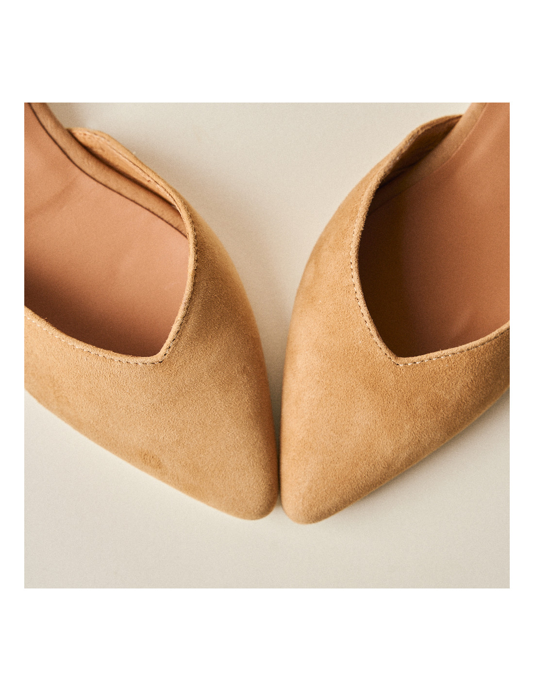 Notre Mary Jane Décolleté en V Emma, une Mary Jane plate en cuir pour femme qui affine et met en valeur le pied grâce à son décolleté en V. Un détail subtil qui apporte distinction et allonge visuellement la ligne du cou-de-pied. Confectionnée en cuir véritable et dotée d’une bride à la cheville avec boucle, elle offre un maintien confortable et sécurisé, parfait pour le quotidien. Disponible en beige et en coloris cuir en daim, deux teintes polyvalentes et intemporelles qui s’associent facilement avec des robes, jupes ou pantalons. La version en daim offre une finition plus douce et naturelle, tandis que le beige en cuir lisse propose une esthétique plus épurée et élégante.