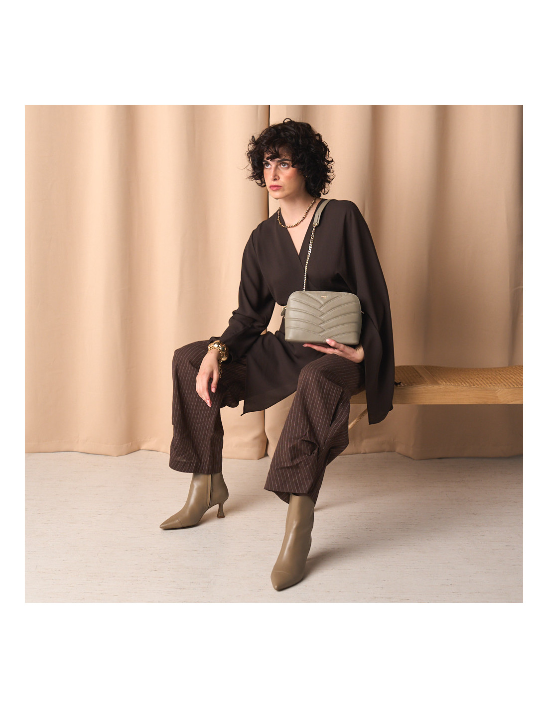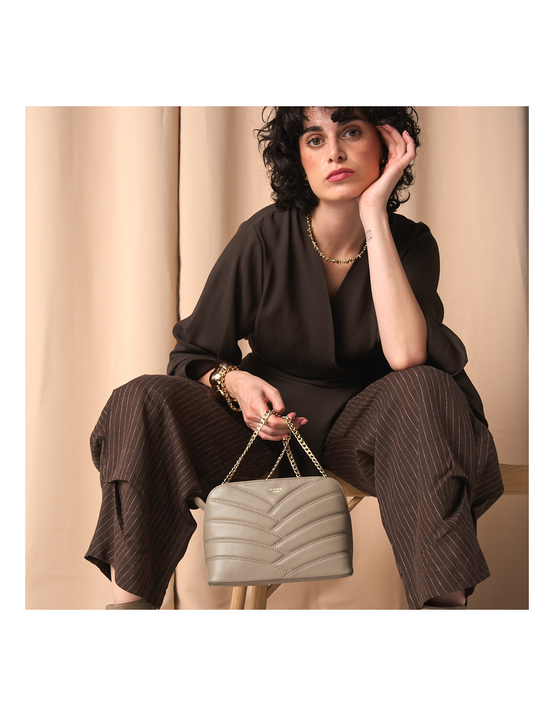 Sac en cuir matelassé pour femme de taille moyenne avec chaîne dorée. Un sac en cuir au design classique revisité. Toute femme a besoin d’un petit sac de qualité avec chaîne dorée dans son dressing — la chaîne apporte une touche vintage et sophistiquée qui sublime aussi bien les looks habillés que décontractés. Il suffit de jouer un peu avec les tenues pour le porter aussi bien au bureau qu’à un mariage. L’accessoire parfait pour toutes les occasions.