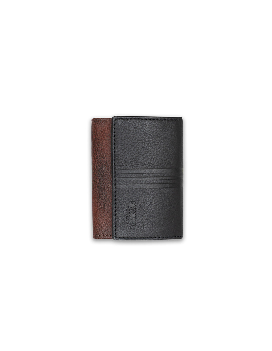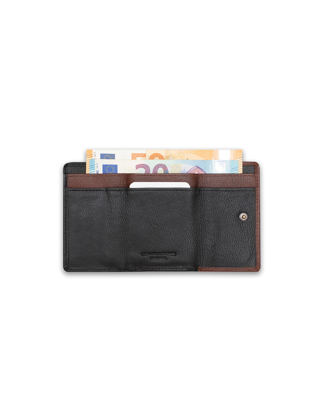 Portefeuille en cuir pour homme confectionné en cuir naturel de haute qualité, au design classique et au format pliable. Il dispose de compartiments pour cartes et d’un espace pour les billets, ainsi que d’un porte-monnaie extérieur à bouton-pression offrant un accès pratique et fonctionnel.
