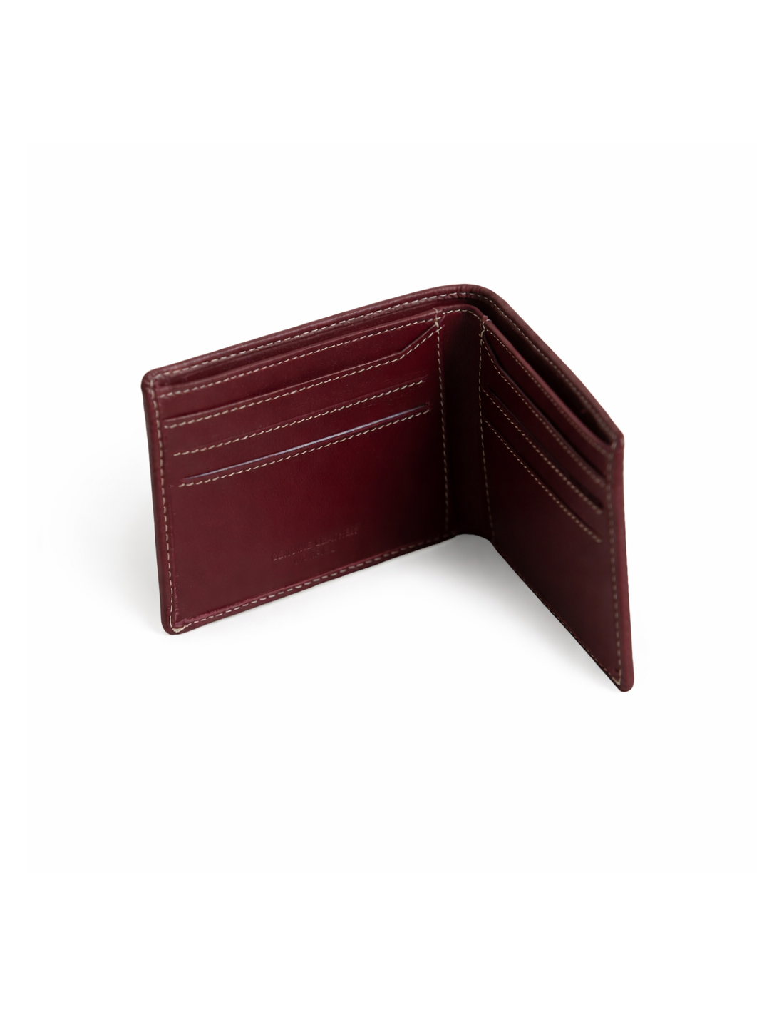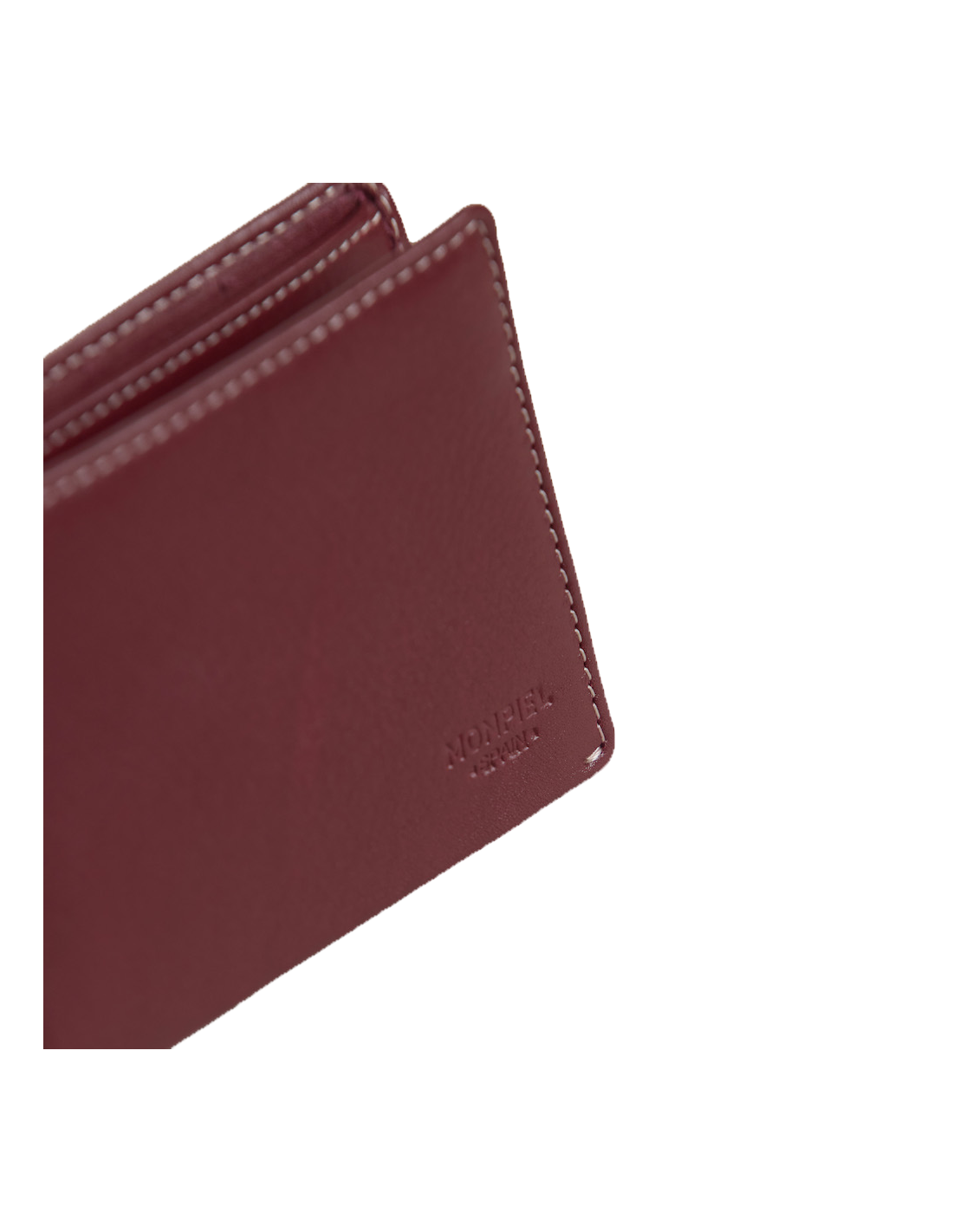 Caja de cartera de cuero de hombre con billetero y monedero sobre fondo blanco - MONPIEL