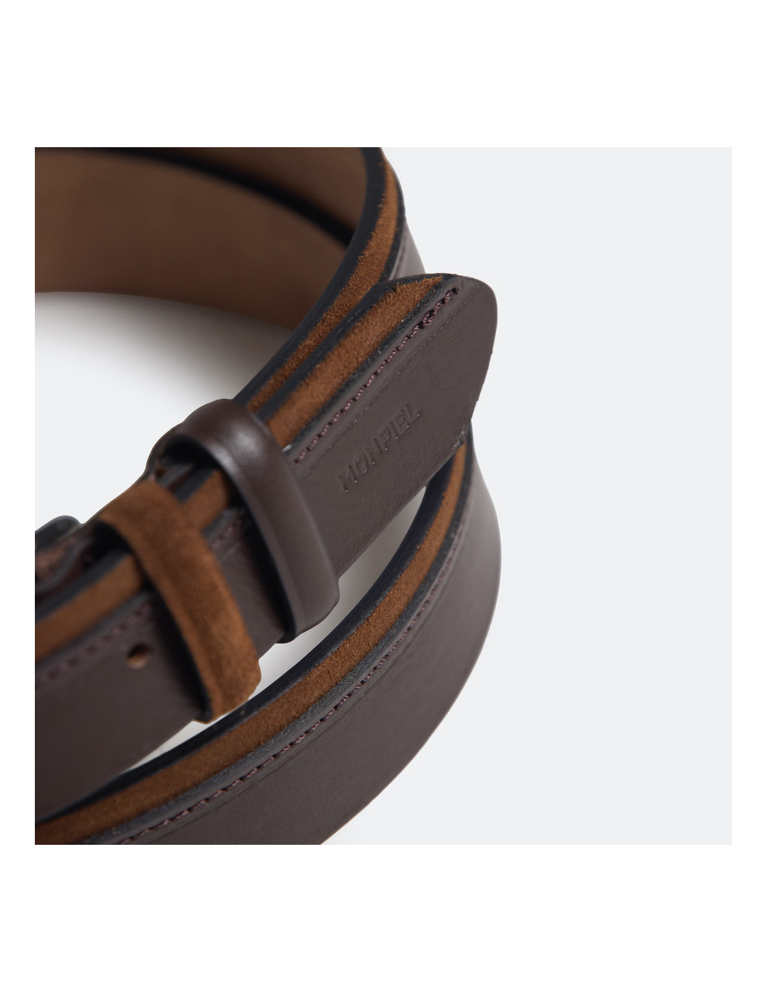 Cinturón piel de vaqueta mezclada con serraje. Este cinturón de piel para hombre tiene un diseño novedoso y distinto, da a tus looks ese toque de elegancia con este exclusivo diseño. Acabado perfecto de los mejores marroquineros españoles y una mezcla de color que podrás combinar a diario. Hecho a mano en España con pieles de primera calidad. Disponible en 3 colores: marino, burdeos y habana.