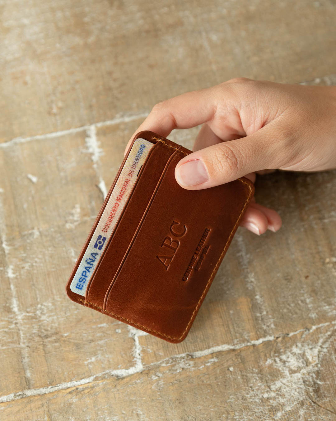 Porta carte in pelle personalizzati: Nella parte posteriore, centrati orizzontalmente.