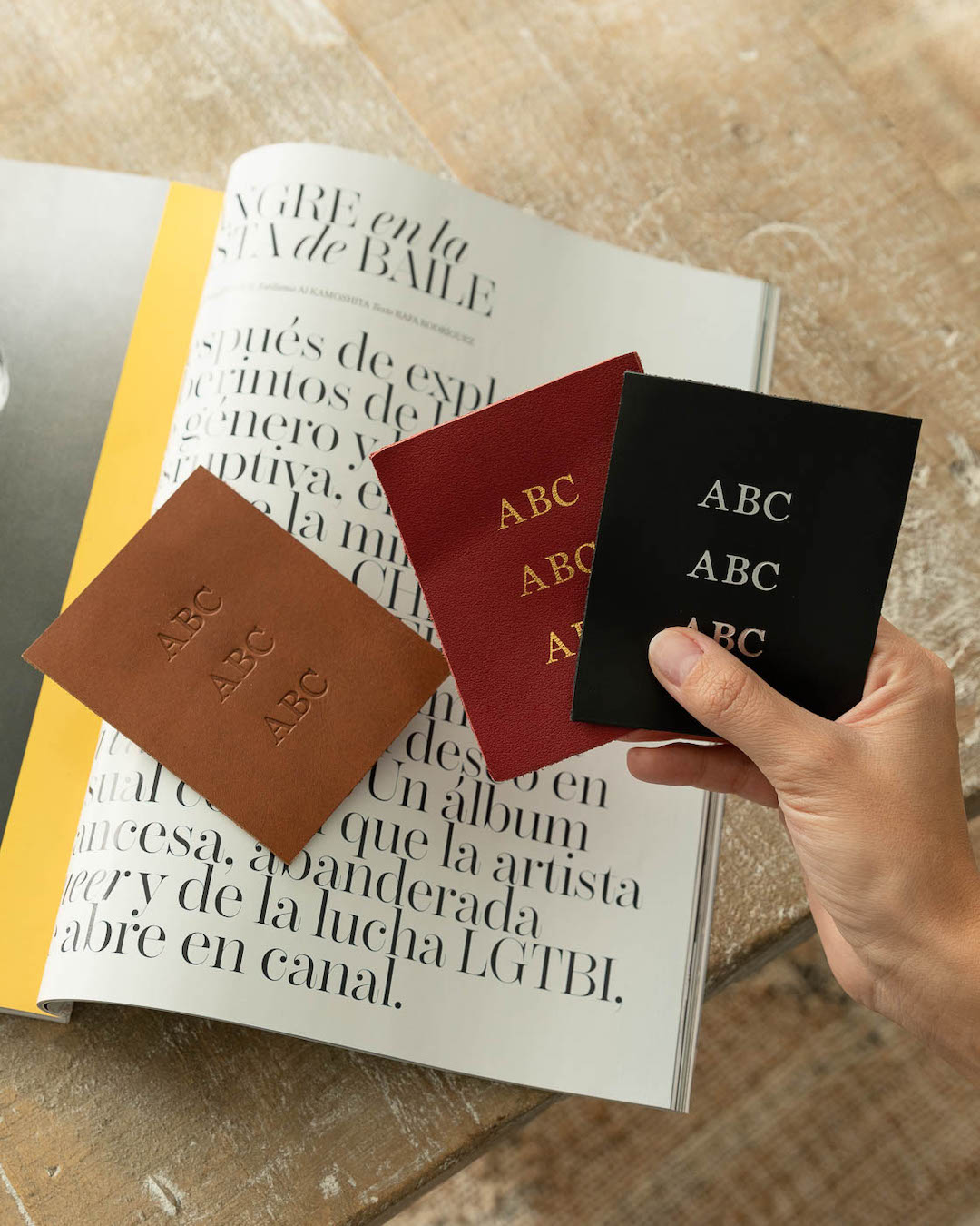 Portafogli in pelle personalizzati: Nella parte interna, aletta sinistra o destra (a seconda del modello), nella parte inferiore verticale e centrati orizzontalmente su quella aletta.