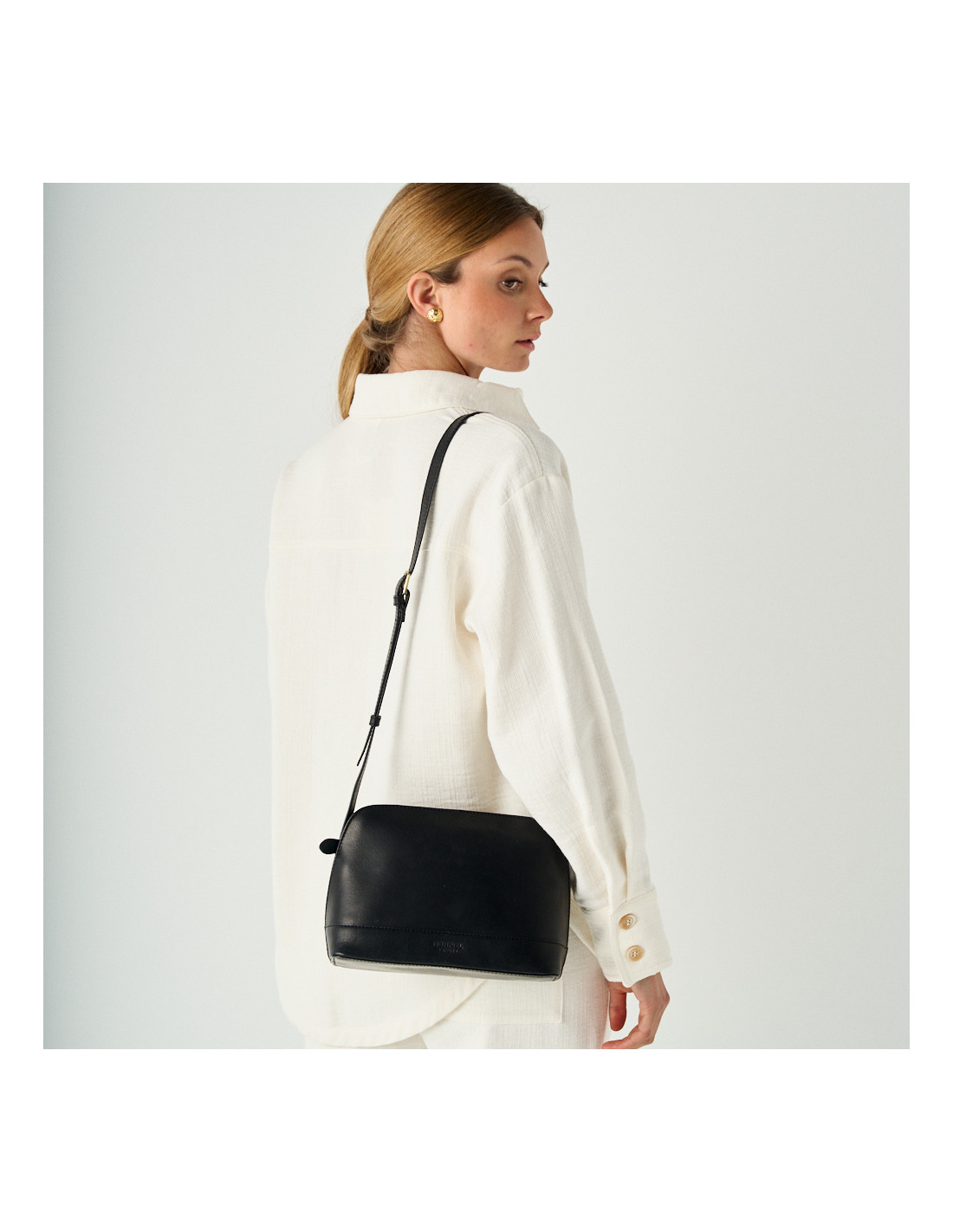 Borsa media in pelle nera, portata sulla schiena - MONPIEL