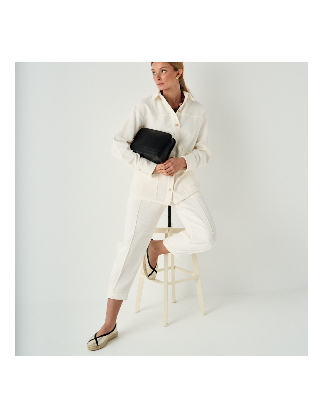 Borsa in pelle nera di medie dimensioni, vista generale con dettaglio ballerine - MONPIEL