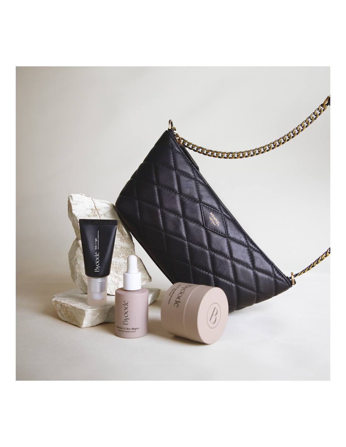 Il Pack Monpiel x Byoode unisce l’iconica borsa in pelle trapuntata New York con tre indispensabili della beauty routine consapevole firmati Byoode, per accompagnarti dentro e fuori casa con lo stesso stile e la stessa attenzione.