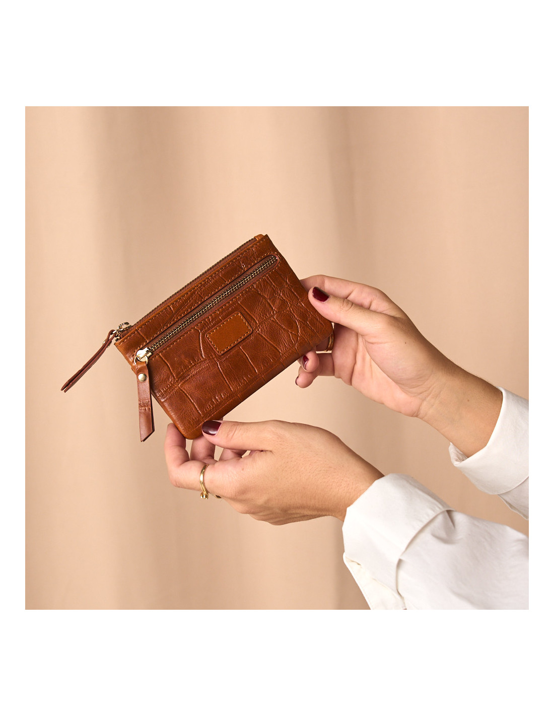 Realizzato in pelle bovina 100% naturale e lavorato artigianalmente, questo portamonete da donna in pelle si distingue per il suo design pratico e sofisticato. Dispone di un scomparto principale con zip sulla parte superiore, dove puoi riporre carte, monete e banconote. Inoltre, questo portamonete in pelle include una tasca esterna frontale e un’altra tasca con zip sul retro, perfette per mantenere tutto in ordine e a portata di mano. All’interno dello scomparto principale, c’è anche uno spazio per tenere le tue carte organizzate.