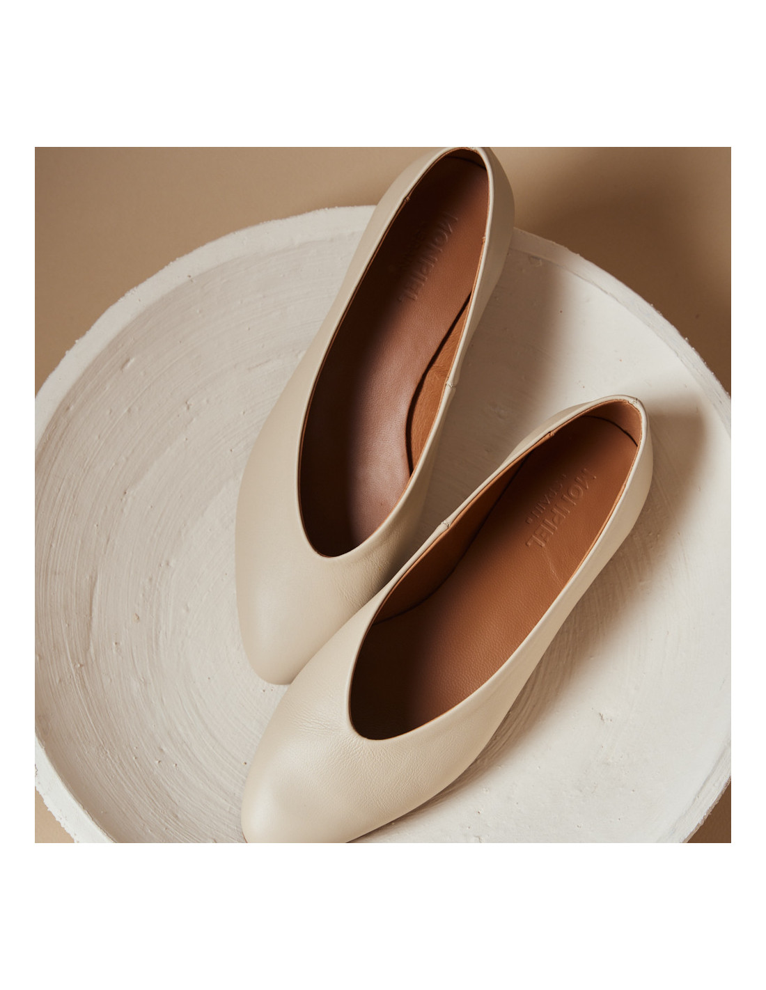Ballerina piatta in beige, foto all’esterno dall’alto appoggiate sul terreno - MONPIEL