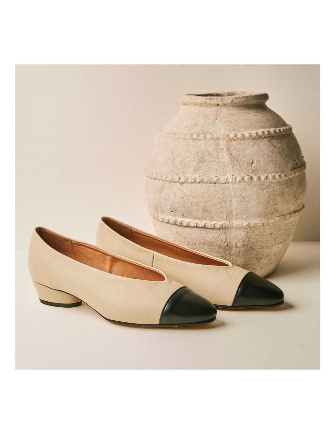 Ritornano le iconiche ballerine con tacco Ameliè, questa volta con un design ancora più speciale. La loro punta bicolore è una fusione affascinante di eleganza e comfort, pensata per esaltare il tuo stile con un tocco classico e vintage. Disponibili in marrone con punta nera, beige con punta nera, beige con punta in vernice beige e animalier con punta nera. Ora anche in bordeaux con punta nera.
