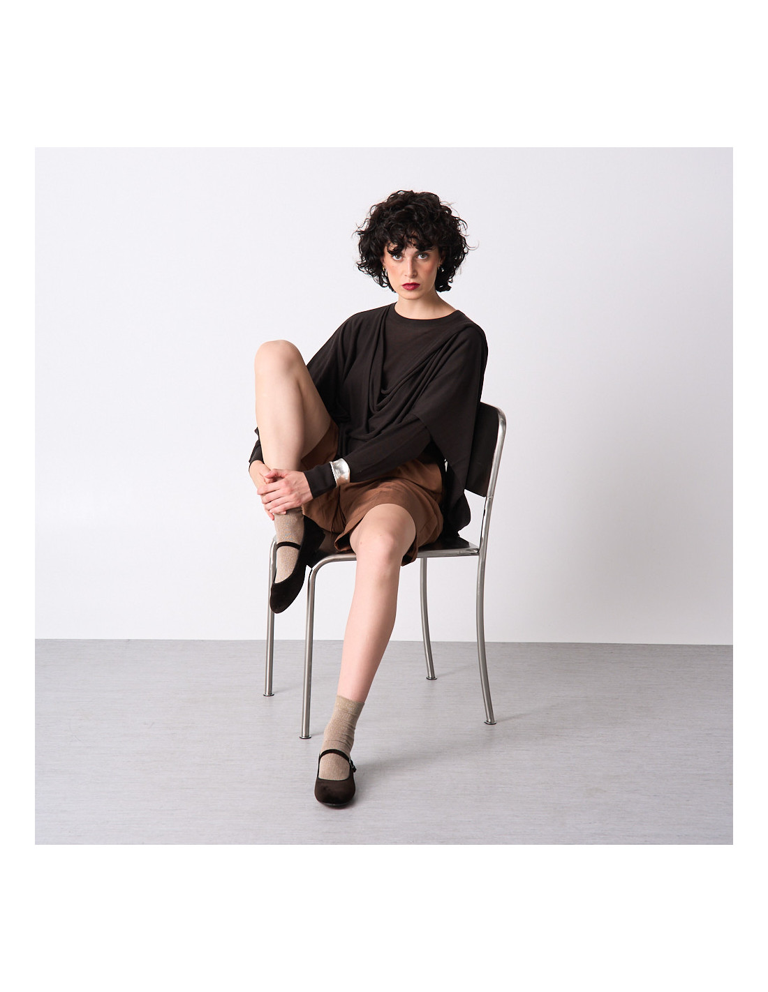 Questa Mary Jane in velluto marrone con profilo nero è una vera opera di eleganza e distinzione. Il suo design classico dona un tocco sofisticato e femminile, ulteriormente valorizzato dal profilo nero.