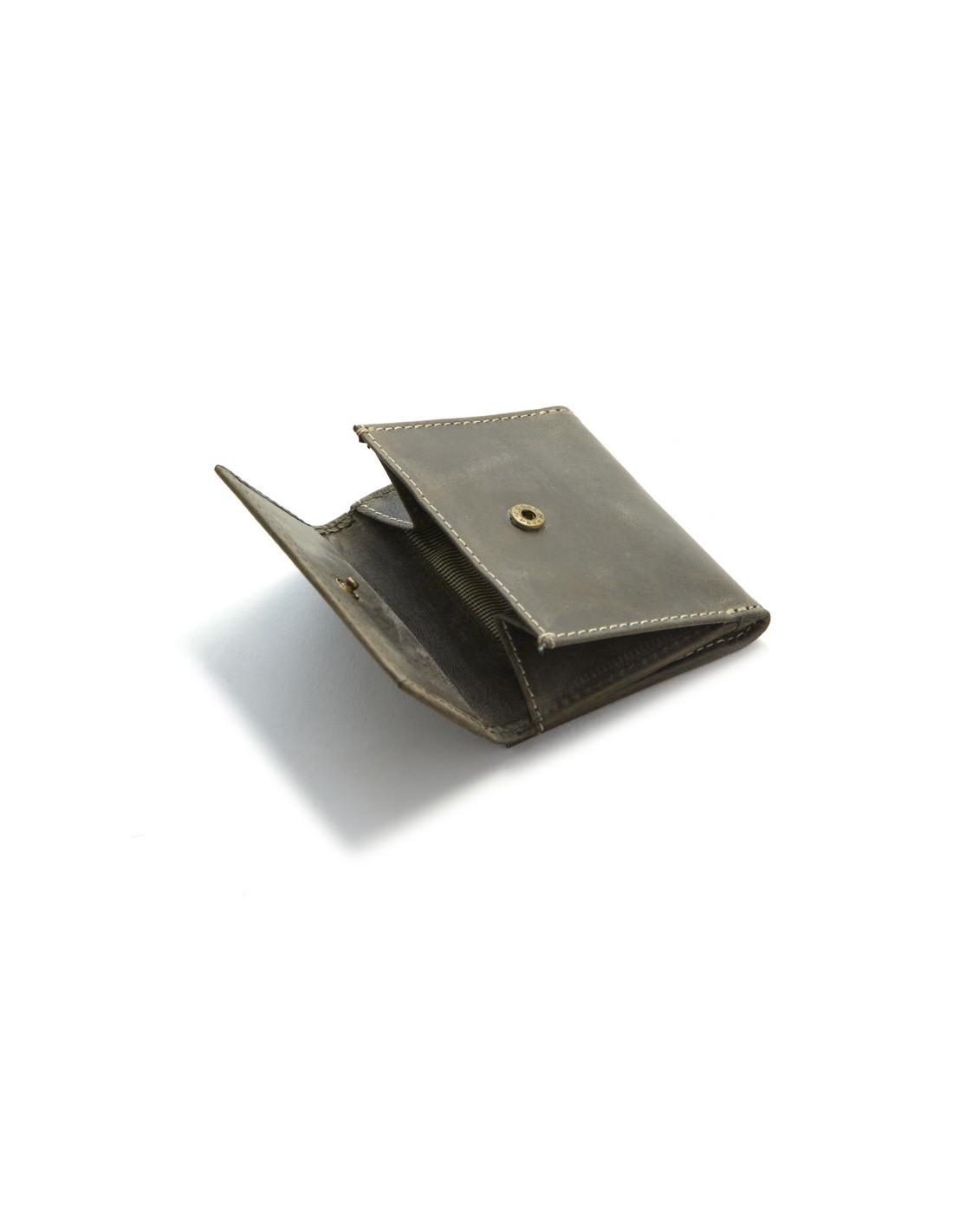 La struttura essenziale e le cuciture a vista ne valorizzano la finitura artigianale e resistente. Disponibile in verde e blu, è un portafoglio in pelle funzionale, discreto e senza tempo.
