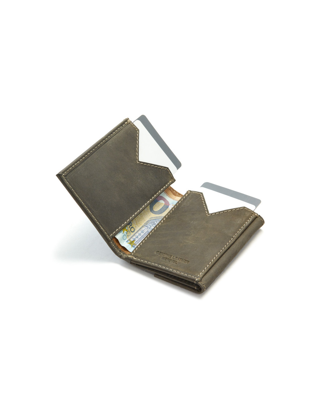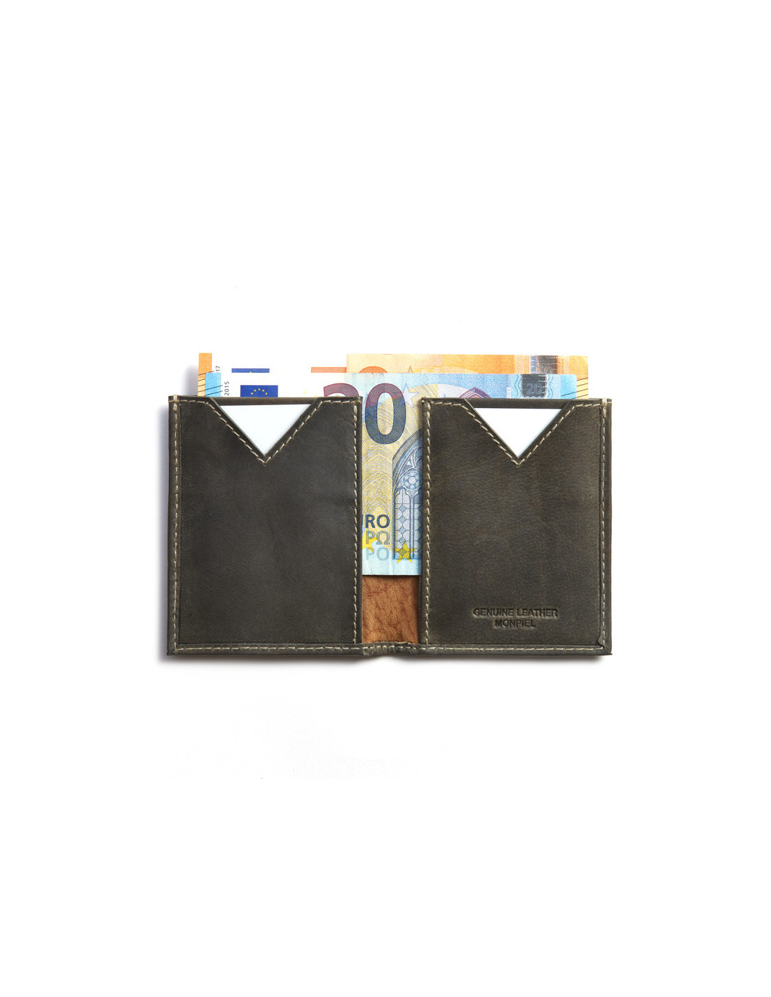 Portafoglio da uomo in pelle realizzato in pelle naturale di alta qualità, con design minimalista e formato compatto. Dispone di scomparti per carte e spazio per le banconote, offrendo una soluzione pratica e leggera per l’uso quotidiano.