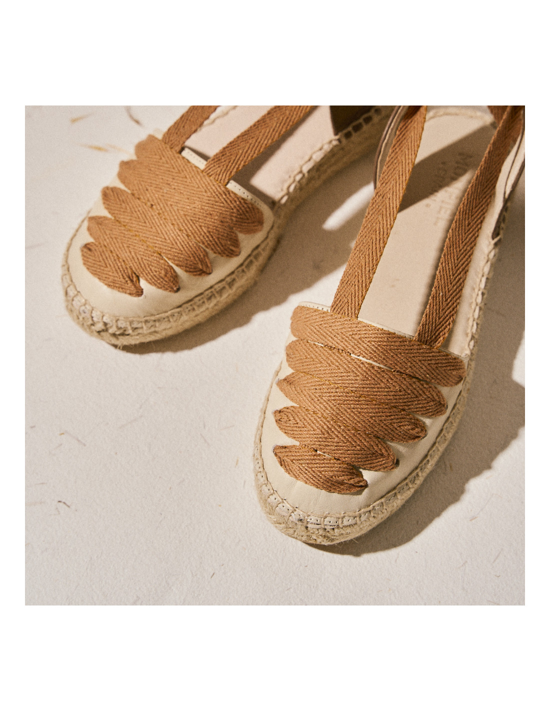 Elaboradas en piel 100% natural, tanto el interior como el exterior, con un acabado cuidado, que te hará sentir que vas sin nada en los pies. El cierre mediante cintas de algodón con terminación en piel envuelve el tobillo de forma natural, aportando sujeción y ese aire artesanal tan propio de las alpargatas clásicas, las de siempre. La suela de esparto con una plataforma de 3,5 cm completa un diseño cómodo y ligero, manteniendo esa esencia veraniega.
