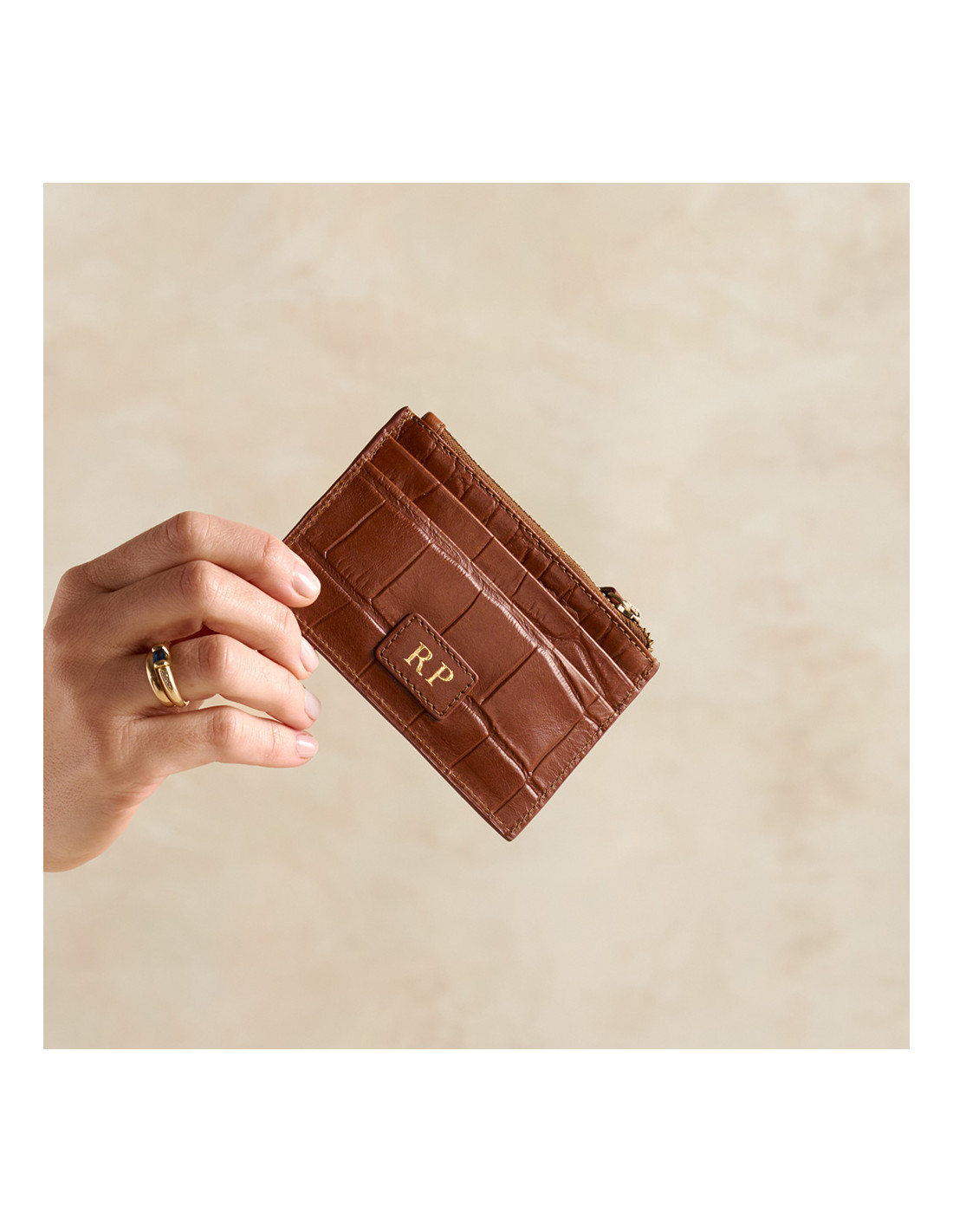 Este monedero tiene un parche de piel en su parte trasera para añadir tus iniciales.