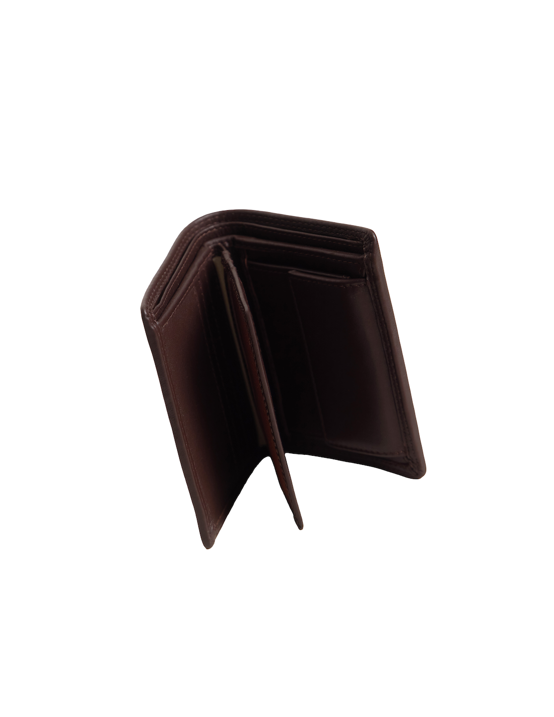 Cartera con monedero interior de caballero elaborada en piel 100% natural. Diseño clásico con doble costura. Capacidad para 9-11 tarjetas, doble billetera y monedero. Disponible en dos colores: negro y marrón.