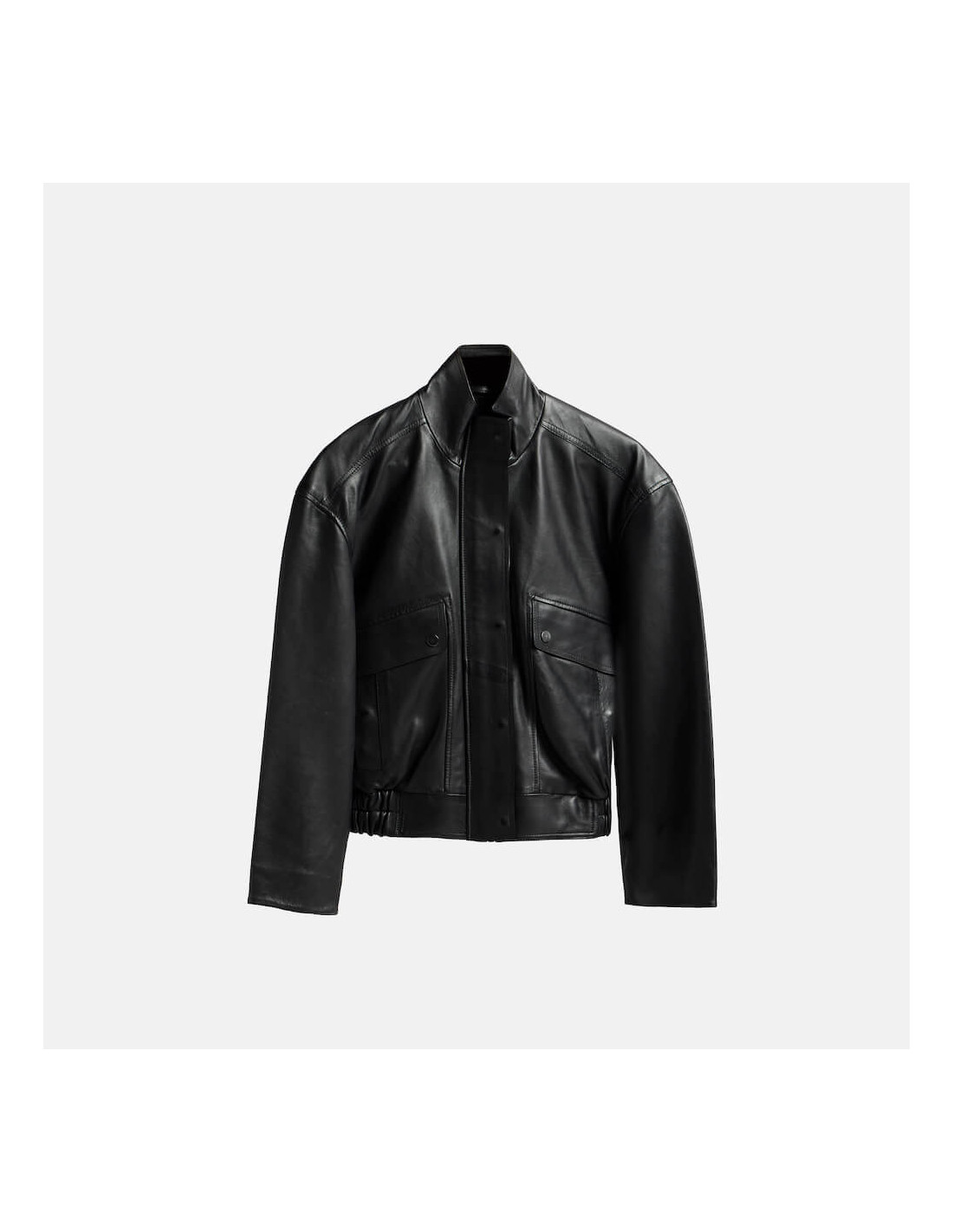 Chaqueta bomber de cuero para mujer. Inspirada en la silueta clásica de las chamarras bomber, esta versión en napa de piel negra eleva el concepto con un acabado lujoso, suave al tacto y con una estructura impecable. El diseño combina la tradición de una prenda icónica como son las chamarras bomber con un enfoque moderno y refinado, ideal para quienes buscan funcionalidad sin perder estilo.