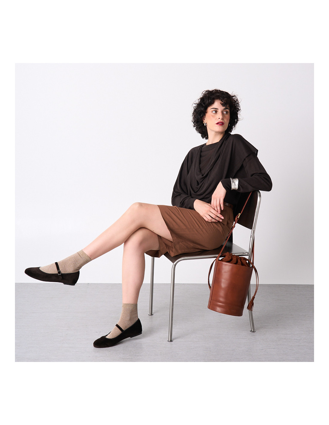 La combinación de colores, con el marrón cálido del terciopelo y el contraste sutil del negro, la convierte en un calzado versátil, ideal tanto para eventos formales como para ocasiones más casuales, ofreciendo una estética refinada y contemporánea.