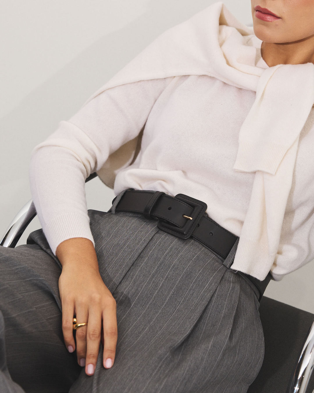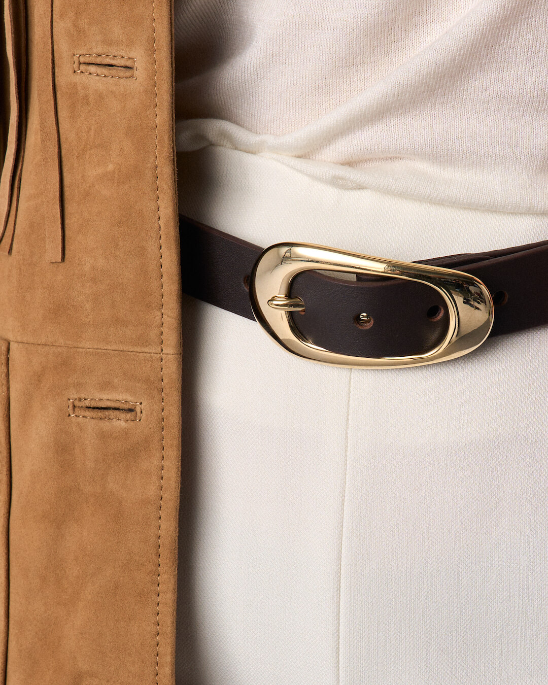 Pessoalmente, adoro usar um bom cinto largo de pele quando tenho uma peça muito larga e quero marcar a cintura.