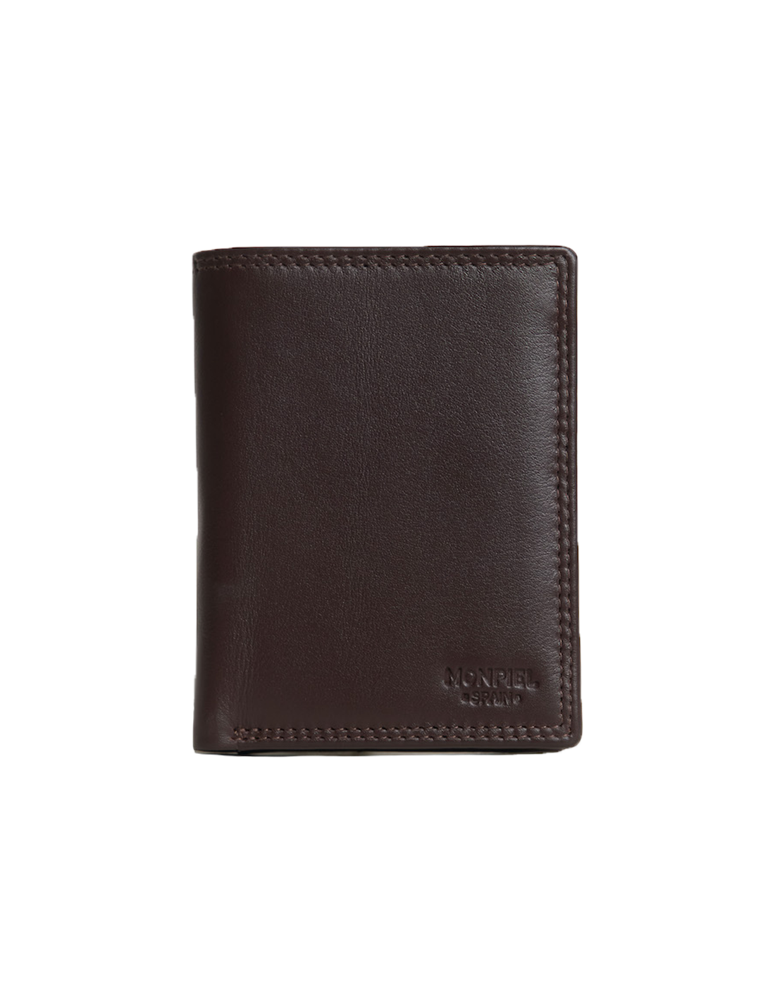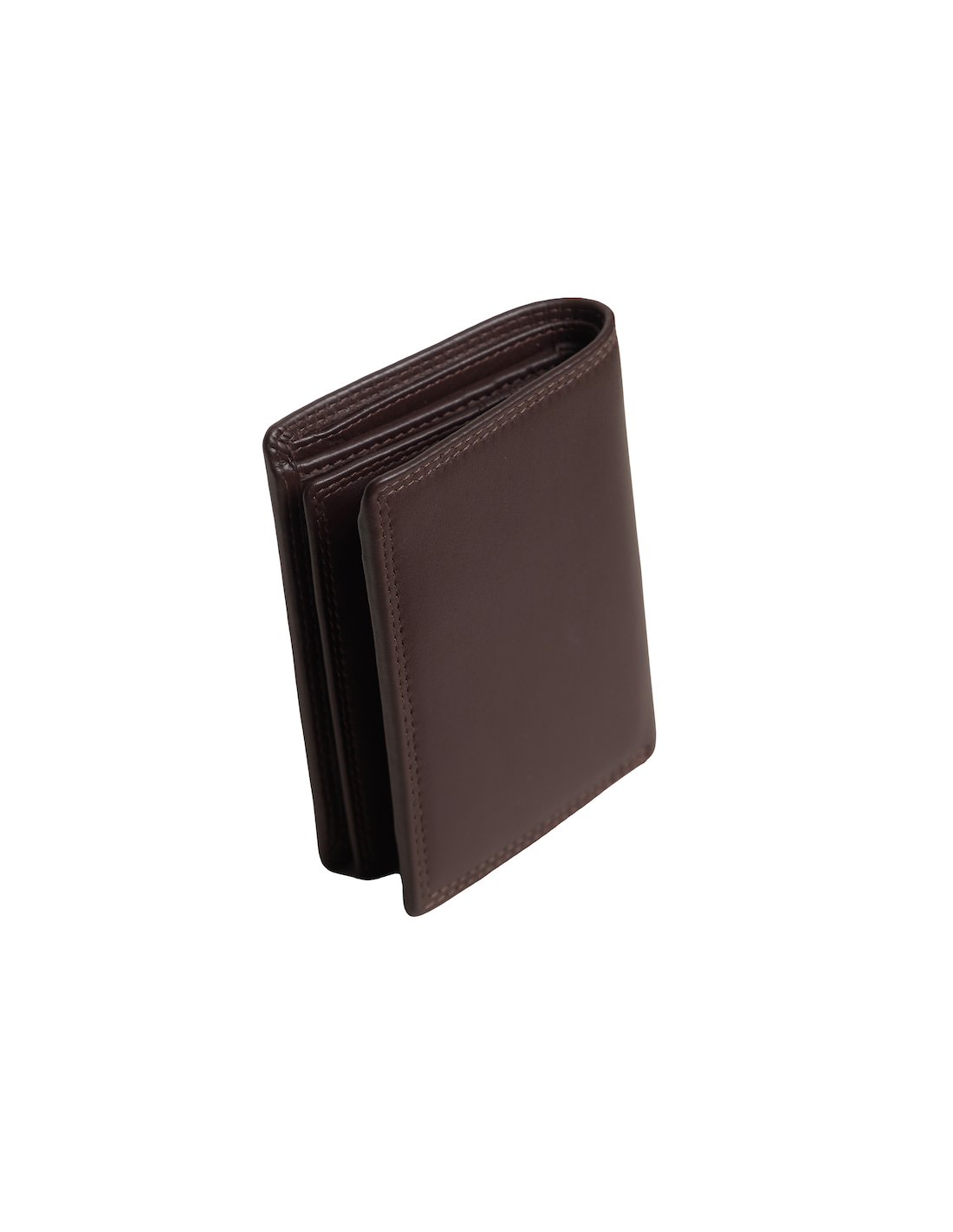Carteira com porta-moedas interno para cavalheiro, feita em couro 100% natural. Design clássico com costura dupla. Capacidade para 9-11 cartões, compartimento duplo para cédulas e porta-moedas. Disponível em duas cores: preto e marrom.