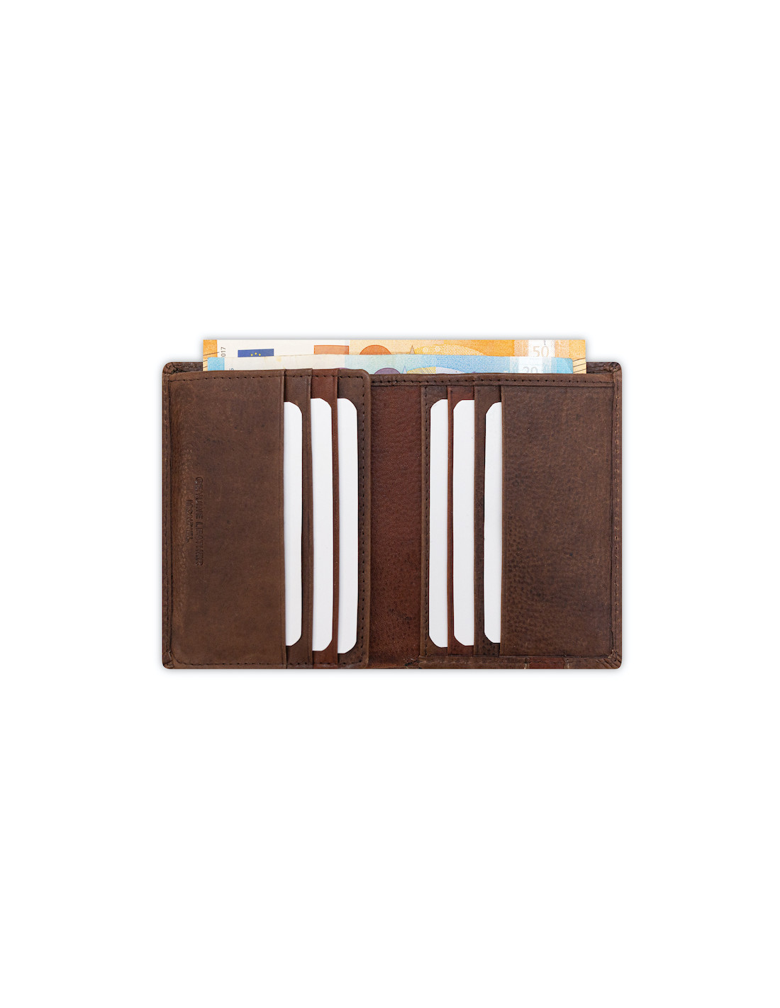 Carteira de couro com elástico em marrom, detalhes dos compartimentos para cartões - MONPIEL