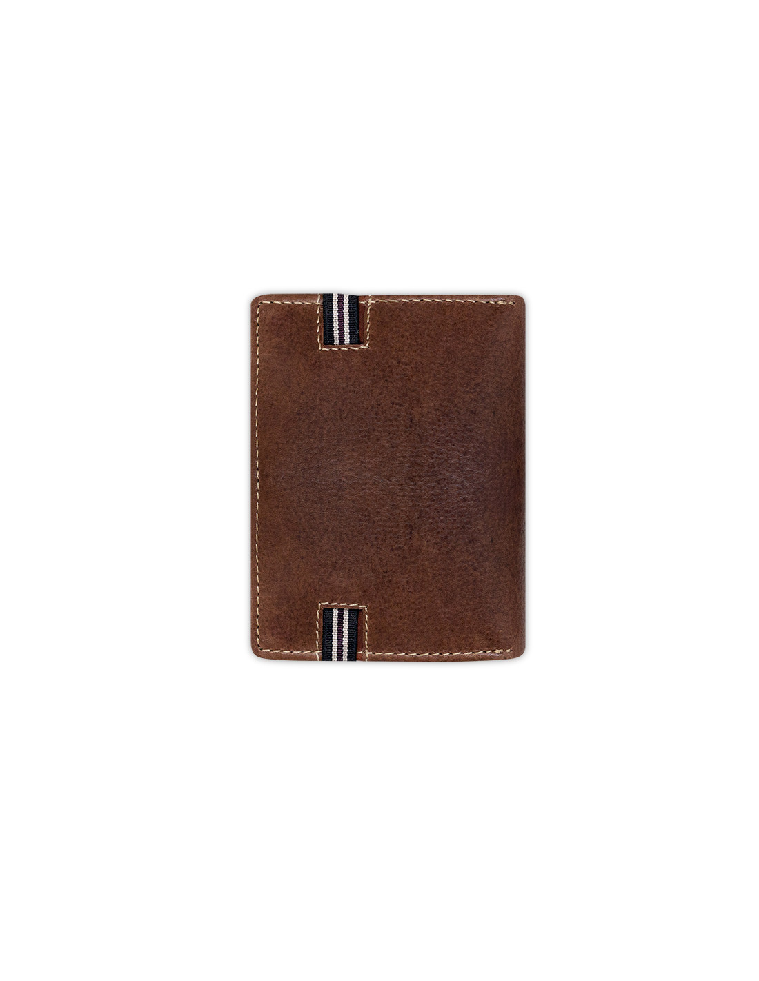 Carteira de couro marrom com elástico, vista traseira sobre fundo branco - MONPIEL