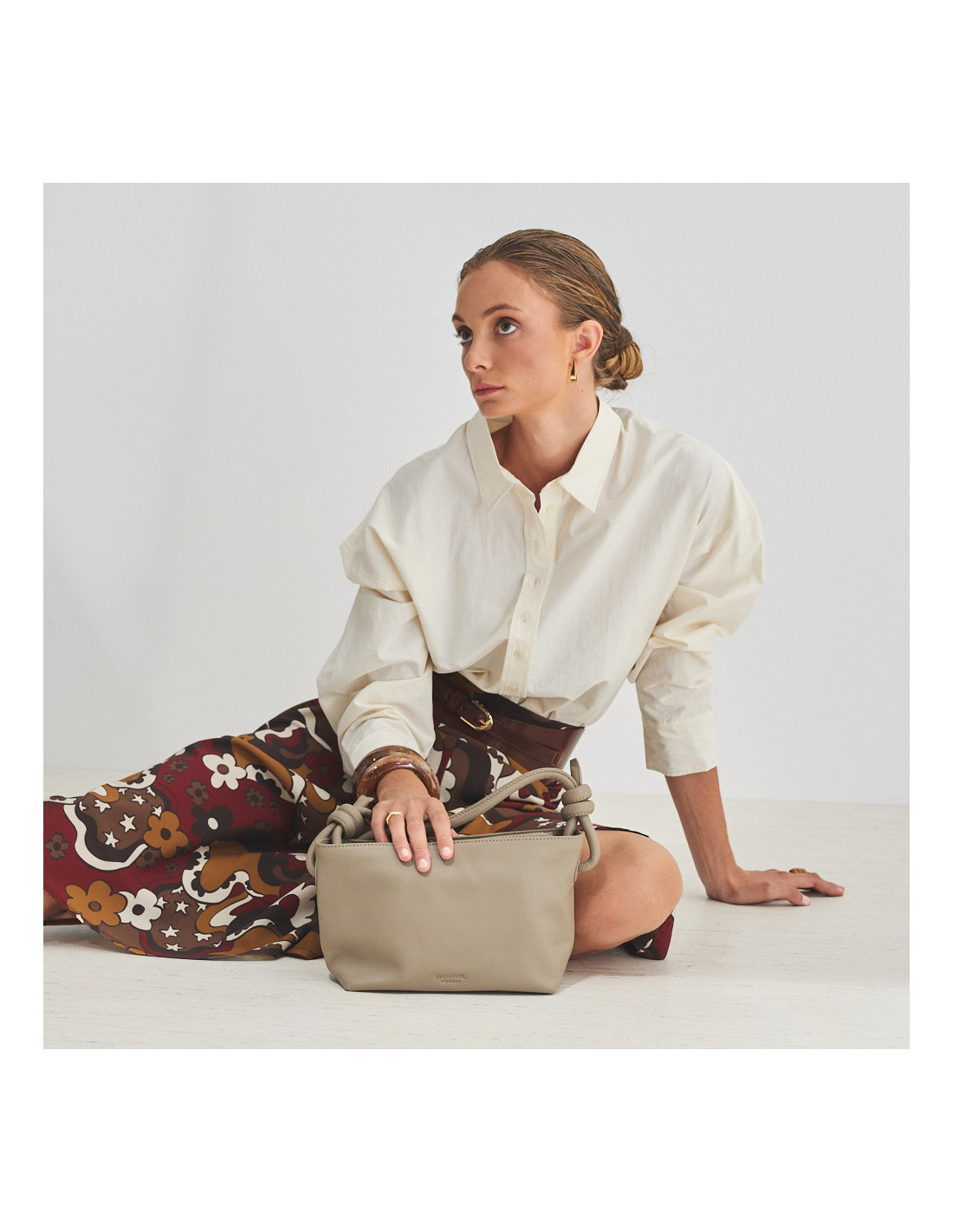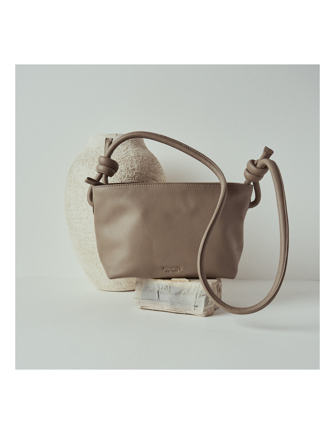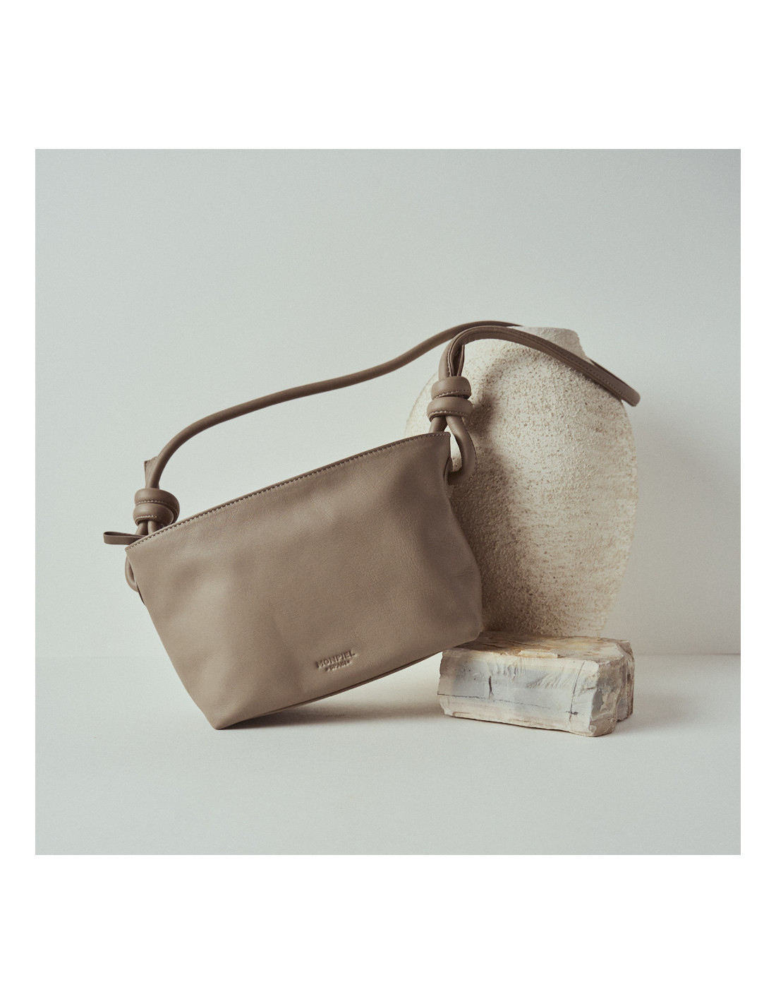 Bolsa pequena de pele para mulher com alça de nós, no tamanho ideal para usar ao ombro. Na MONPIEL preferimos os básicos de qualidade a ter muitos acessórios. Esta bolsa pequena tem nós na alça para que possas ajustar facilmente o comprimento — mais curta à noite, mais comprida durante o dia. A sua versatilidade permite usá-la com calças de ganga ou vestido. Um modelo intemporal fabricado artesanalmente em pele de qualidade superior. Medidas da alça: 60 cm (curta) – 100 cm (longa). Disponível em 6 cores: castanho, preto, bordô, castanho escuro, prata e taupe. A bolsa pequena preta é indispensável no teu armário para qualquer ocasião especial.