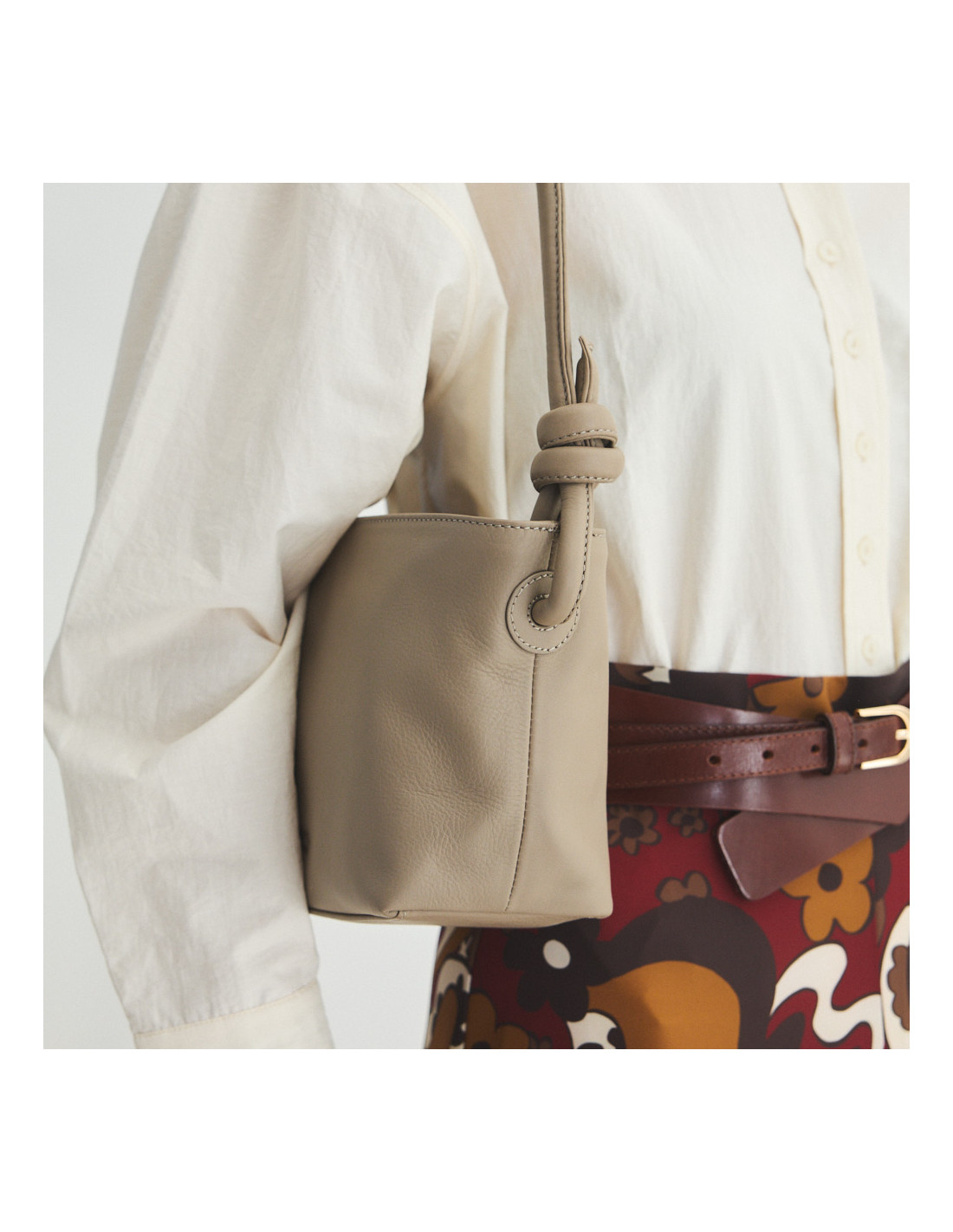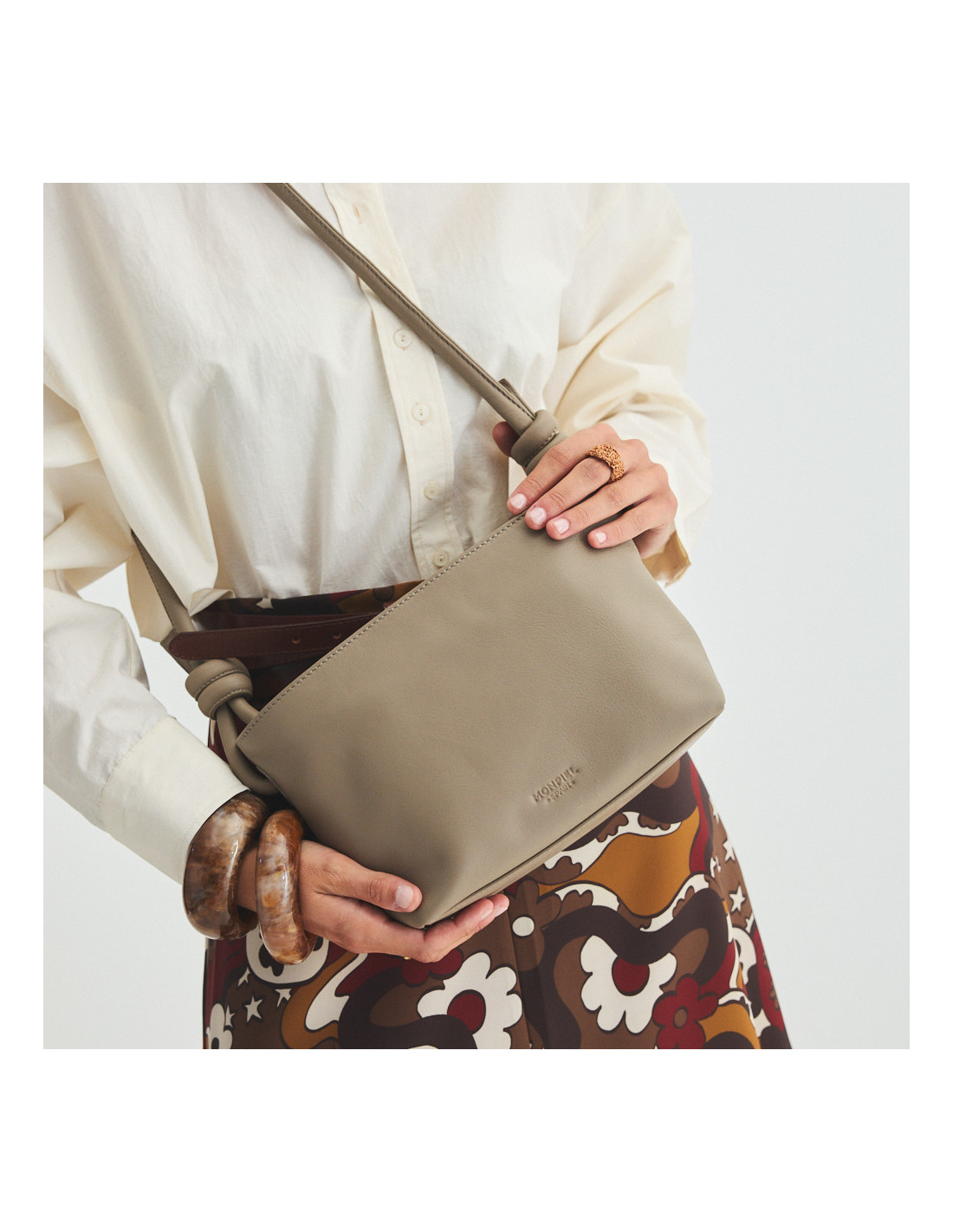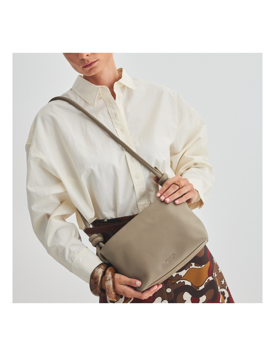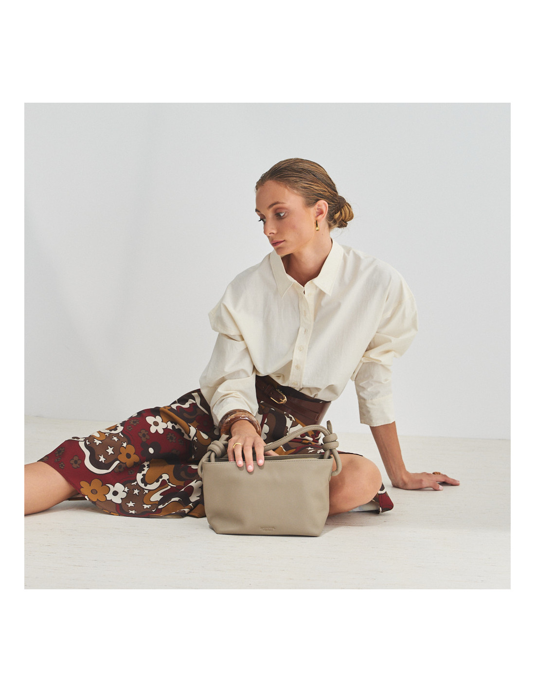 Bolsa pequena de pele para mulher com alça de nós, no tamanho ideal para usar ao ombro. Na MONPIEL preferimos os básicos de qualidade a ter muitos acessórios. Esta bolsa pequena tem nós na alça para que possas ajustar facilmente o comprimento — mais curta à noite, mais comprida durante o dia. A sua versatilidade permite usá-la com calças de ganga ou vestido. Um modelo intemporal fabricado artesanalmente em pele de qualidade superior. Medidas da alça: 60 cm (curta) – 100 cm (longa). Disponível em 6 cores: castanho, preto, bordô, castanho escuro, prata e taupe. A bolsa pequena preta é indispensável no teu armário para qualquer ocasião especial.