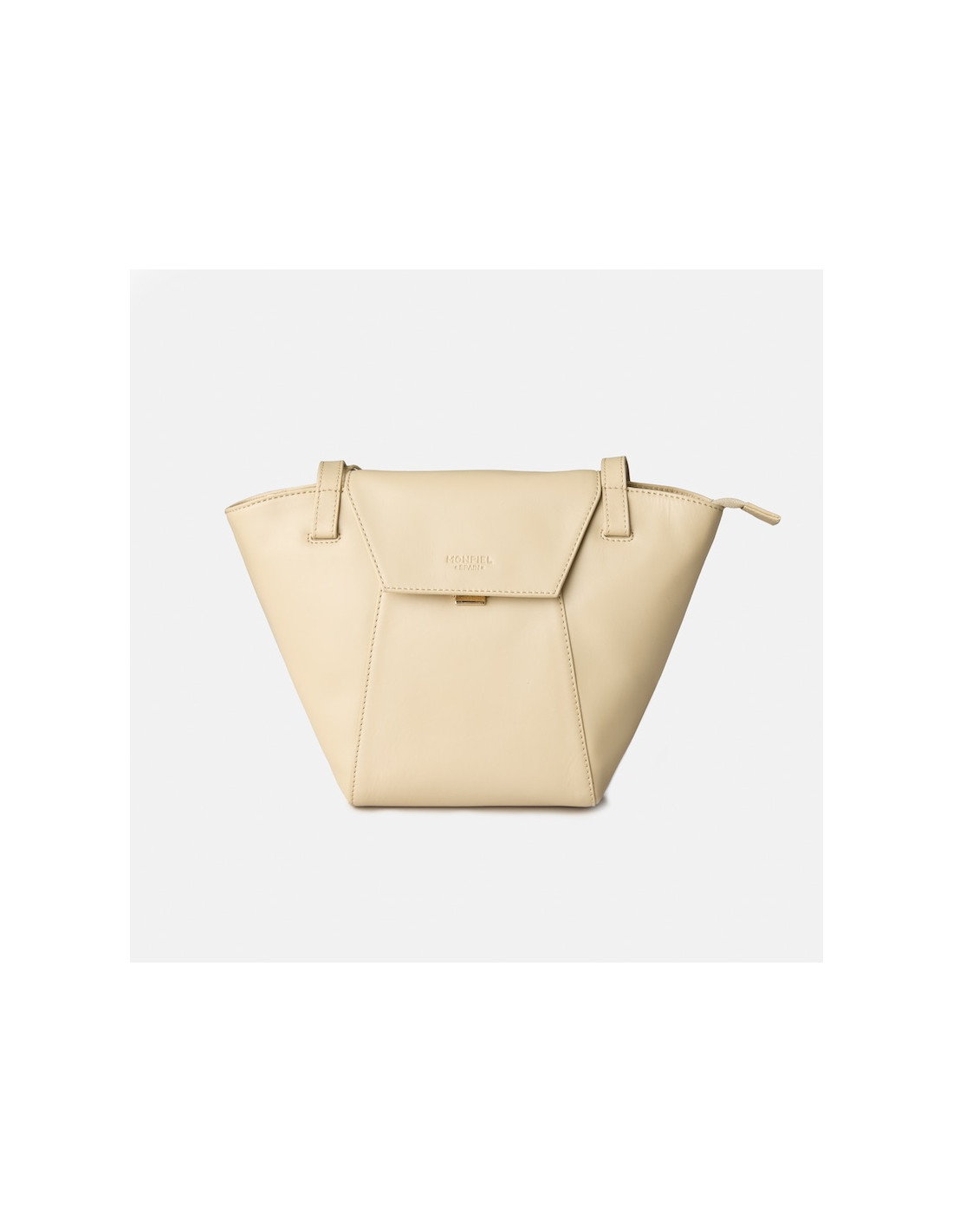 Bolsa de couro feminina tote Paris em bege, pendurada no ombro, com vista frontal - MONPIEL