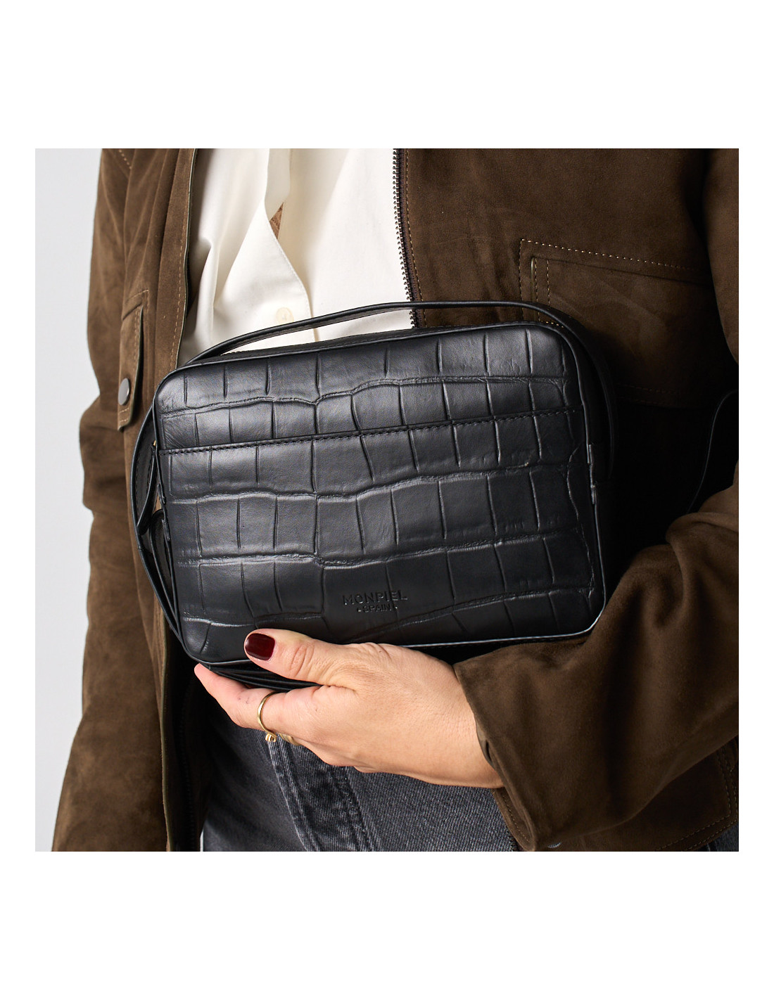 Bolsa tiracolo de couro feita em couro bovino 100% natural, couro estampado de bovino com impressão de crocodilo. O modelo perfeito para o dia a dia, agora com um toque chique. Esta bolsa de couro para mulher vai durar anos e será a bolsa que suas filhas herdarão, um modelo clássico, super confortável e muito versátil que vai durar por anos. Grande capacidade em um espaço reduzido, será a melhor aliada tanto de dia quanto de noite, e se você levá-la para viajar, não vai querer mais tirá-la. Disponível em duas cores: couro e preto.