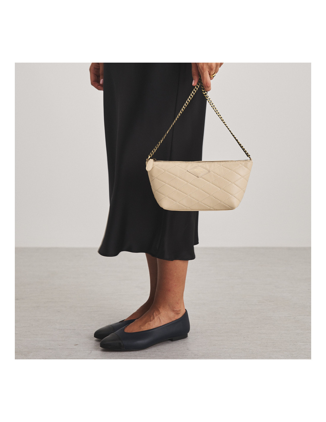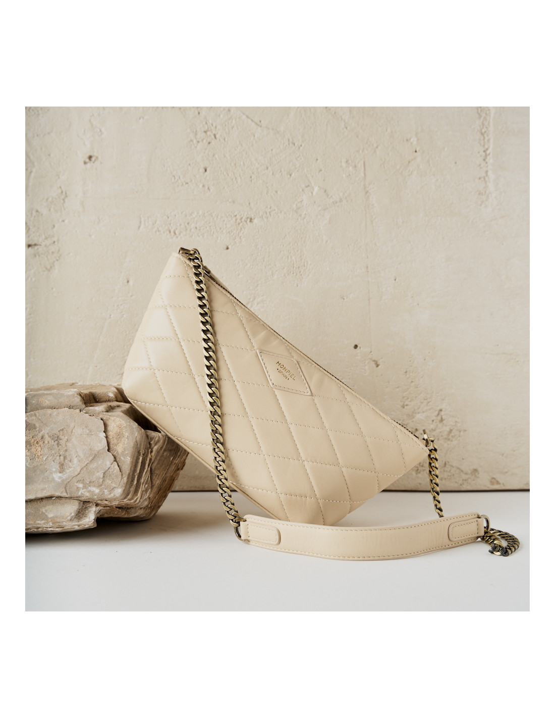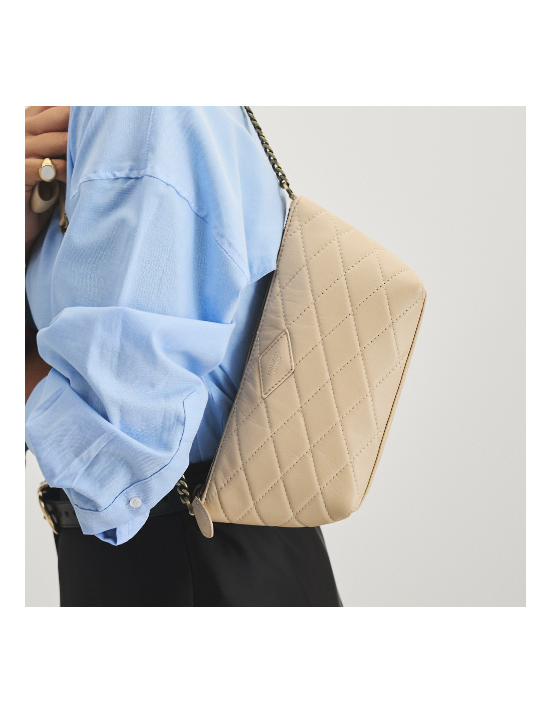 Bolsa Acolchoada de Couro com Corrente Dourada