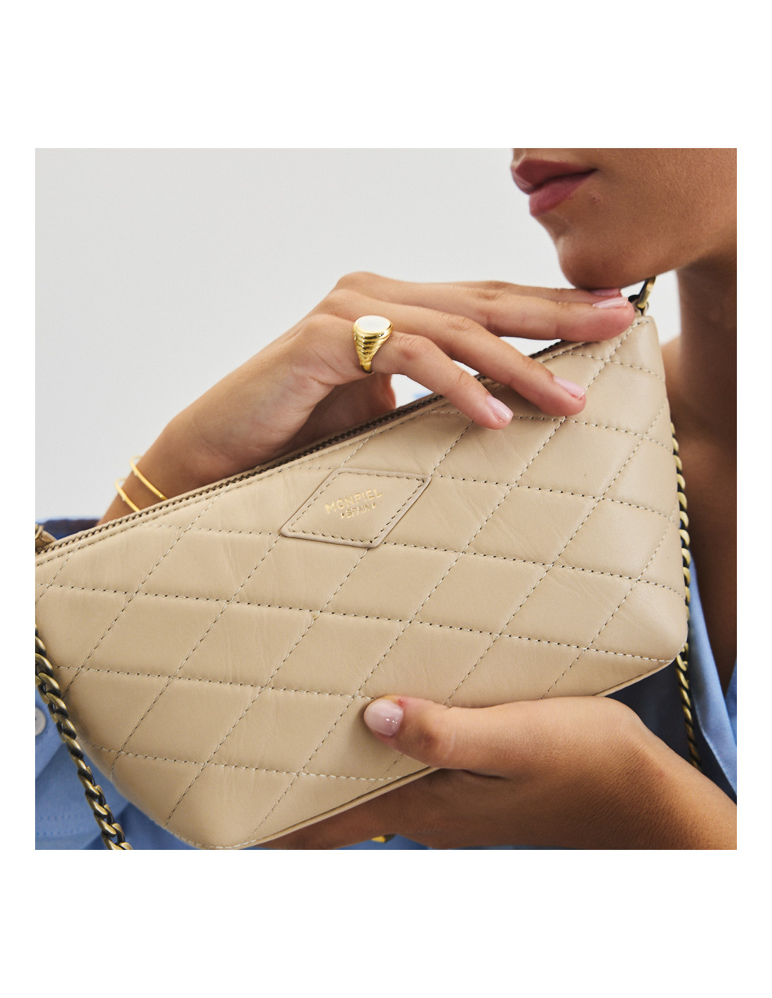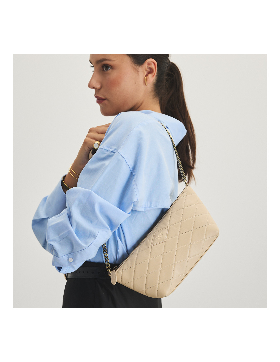 Na MONPIEL estávamos ansiosos para lançar um modelo assim, perfeito para noites de saída ou como um toque sofisticado aos seus looks. O Bolso Mini Corrente Almofadado New York é um bolso de pele pequeno que combina elegância com praticidade. Este bolso se destaca pelo seu design almofadado clássico e sua corrente dourada que adiciona um brilho sutil. Seu tamanho compacto é ideal para carregar o essencial sempre com você. Feito com uma suave pele de napa para um toque espetacular. O tamanho da alça é perfeito para dar um toque de estilo aos seus looks. Atenção! Este bolso não pode ser usado como bandoleira, pois a corrente foi projetada para ser um bolso de ombro. Você pode adquiri-lo nas cores preto e gelo, e temos disponível a personalização. Faça do seu bolso mini uma parte de você.