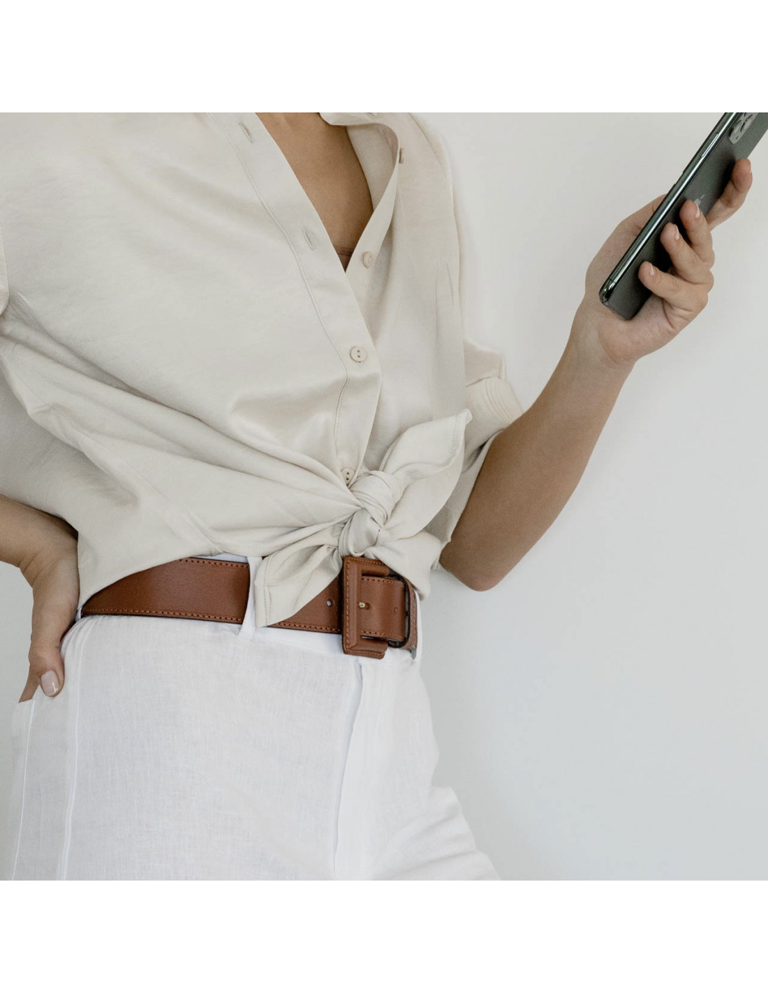 Cinto Largo Feminino de Couro com Fivela Forrada