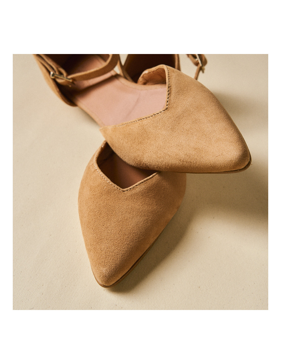 A nossa Mary Jane Decote em V Emma, uma Mary Jane rasa em pele para mulher que alonga e valoriza o pé graças ao seu decote em V. Um detalhe subtil que acrescenta distinção e alonga visualmente a linha do peito do pé. Confeccionada em pele genuína e com pulseira com fivela no tornozelo, proporciona um ajuste confortável e seguro, perfeito para o dia a dia. Disponível em cor bege e em cor couro em pele camurça, dois tons versáteis e intemporais que combinam facilmente com vestidos, saias ou calças. A versão em camurça oferece um acabamento mais suave e natural, enquanto o bege em pele lisa apresenta uma estética mais limpa e elegante.