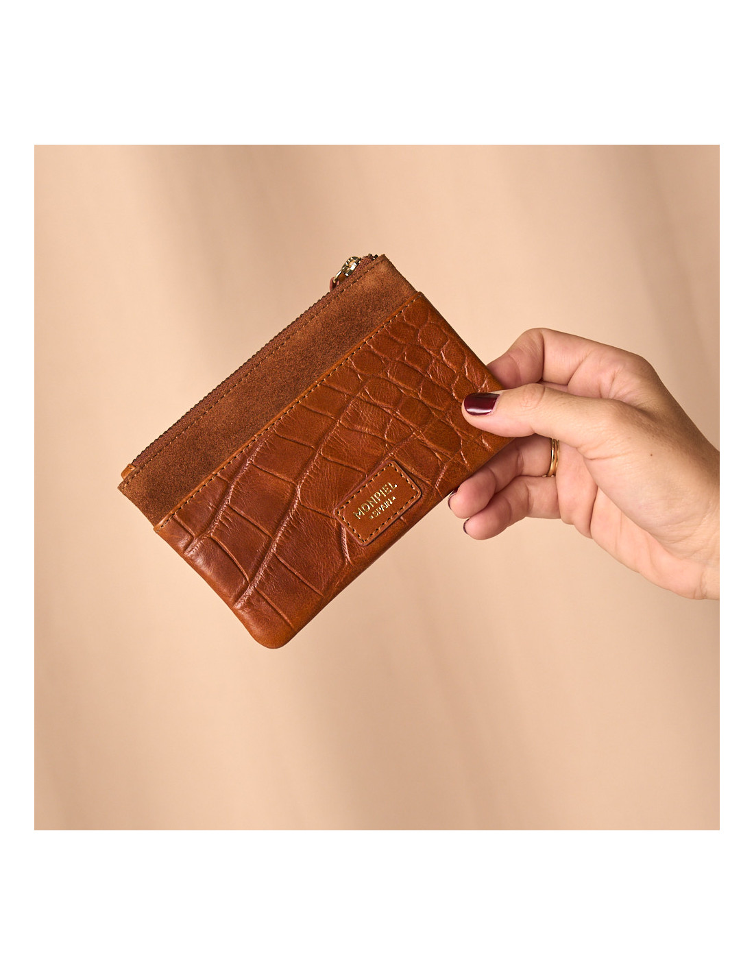 Confeccionado em couro bovino 100% natural e de forma artesanal, este porta-moedas feminino de couro destaca-se pelo seu design prático e sofisticado. Possui um compartimento principal com fecho de zíper na parte superior, onde pode guardar cartões, moedas e notas. Além disso, este porta-moedas em couro inclui um bolso exterior na parte frontal, bem como outro bolso com zíper na parte traseira, perfeito para manter tudo organizado e à mão. Dentro do compartimento principal, também conta com um espaço para manter os cartões arrumados.