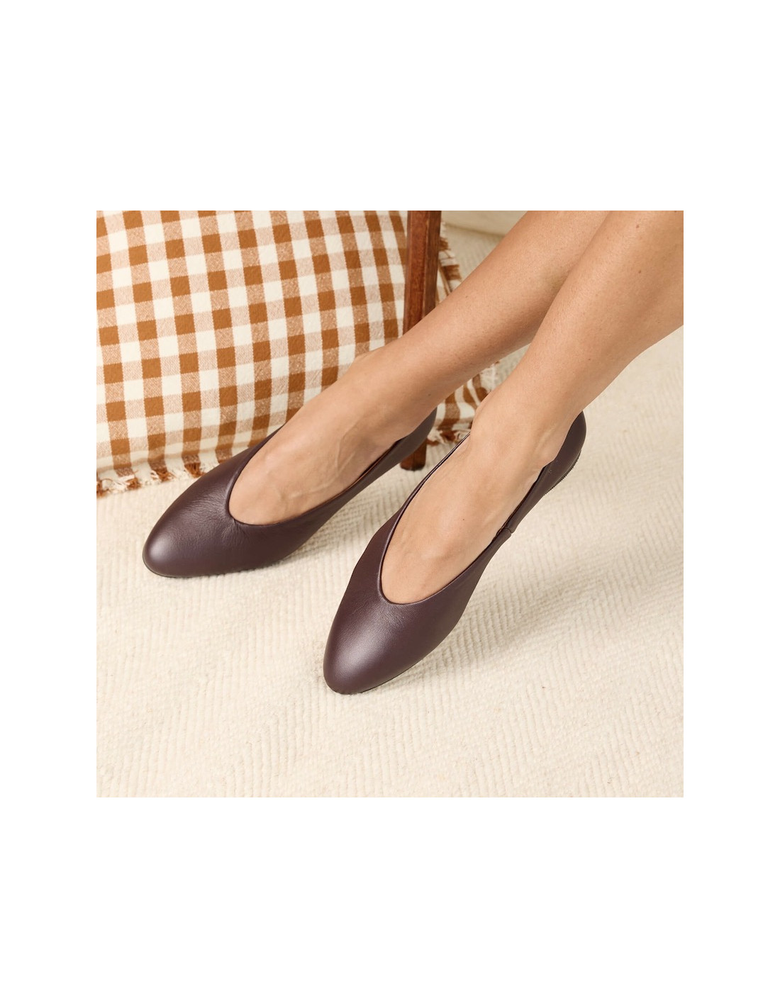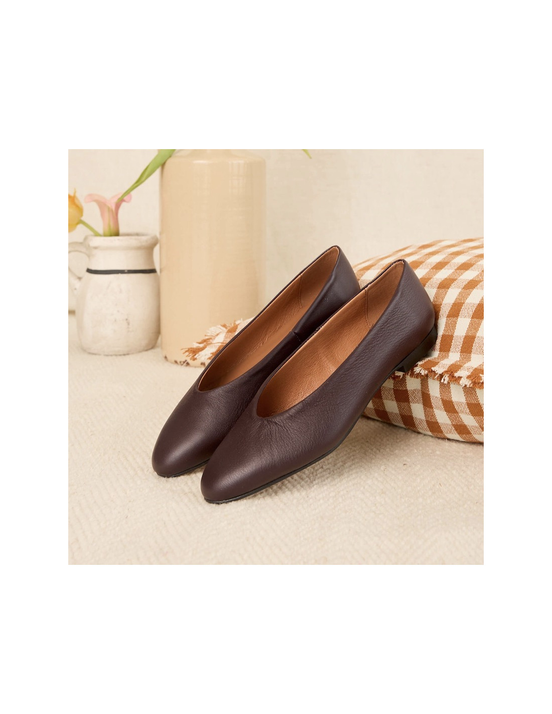 Bailarinas femininas de couro 100% natural. Nossos novos sapatos planos foram criados pela nossa equipe de sapateiros para que você possa pisar forte com um novo básico Monpiel. Se você busca um sapato confortável que fuja da clássica bailarina com laço, este é o seu modelo! Bailarina Ameliè plana, de bico fino e decote fechado para estilizar o pé, é um modelo atual que remete um pouco aos anos 90. Sapato de couro feminino confortável e moderno. Forro interno e palmilha de couro para que seu pé não sofra e respire de forma natural. Salto de 1,5 cm na cor natural, ideal para este verão! Projetadas e feitas artesanalmente inteiramente na Espanha. Disponível nas cores couro, rosa claro, bege e o novo bordô com sola preta e camurça preta, algo mais especial, se você quiser dar ao seu look um toque mais original.