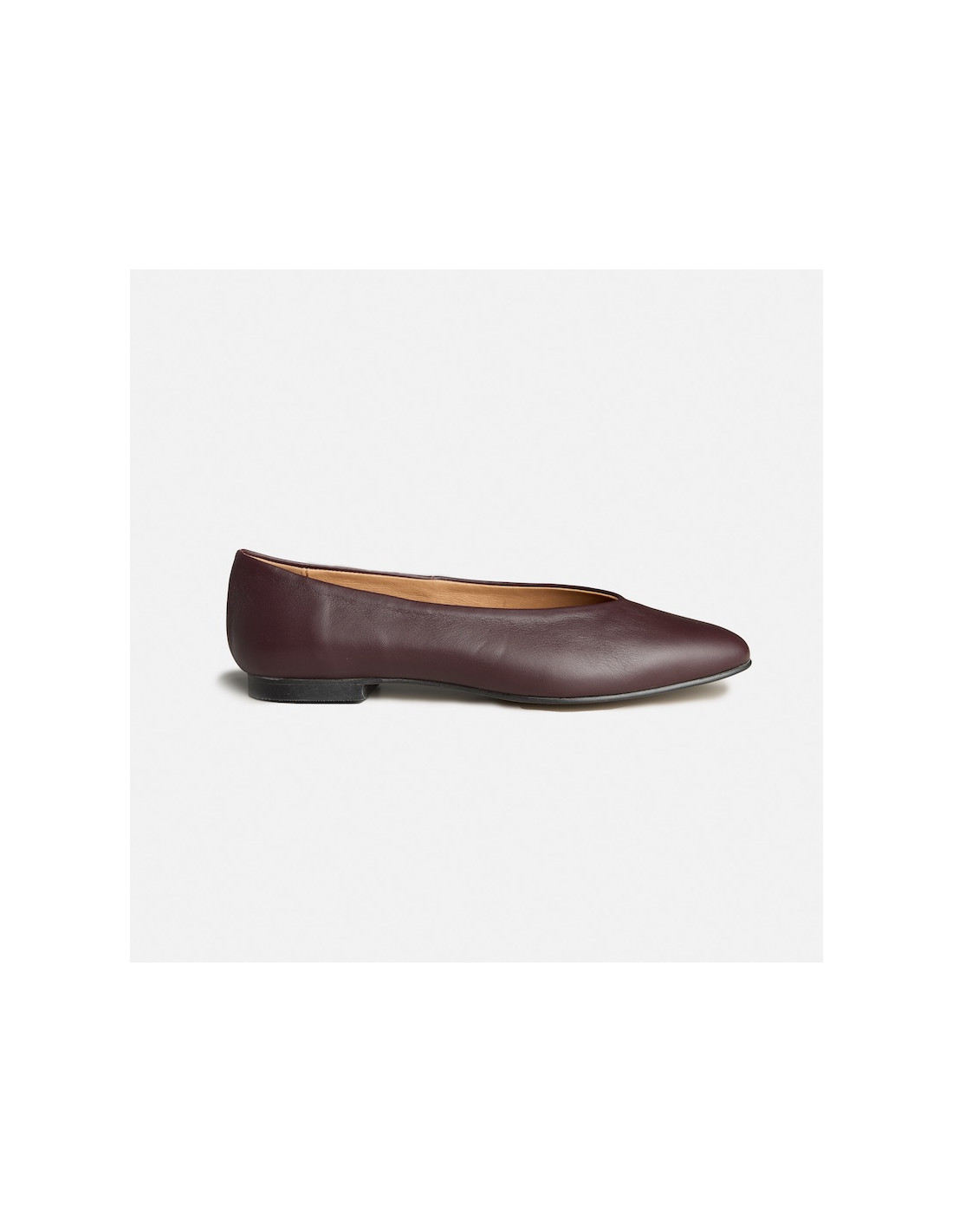 Bailarina plana em cor bordô com vista lateral apoiadas sobre uma almofada - MONPIEL